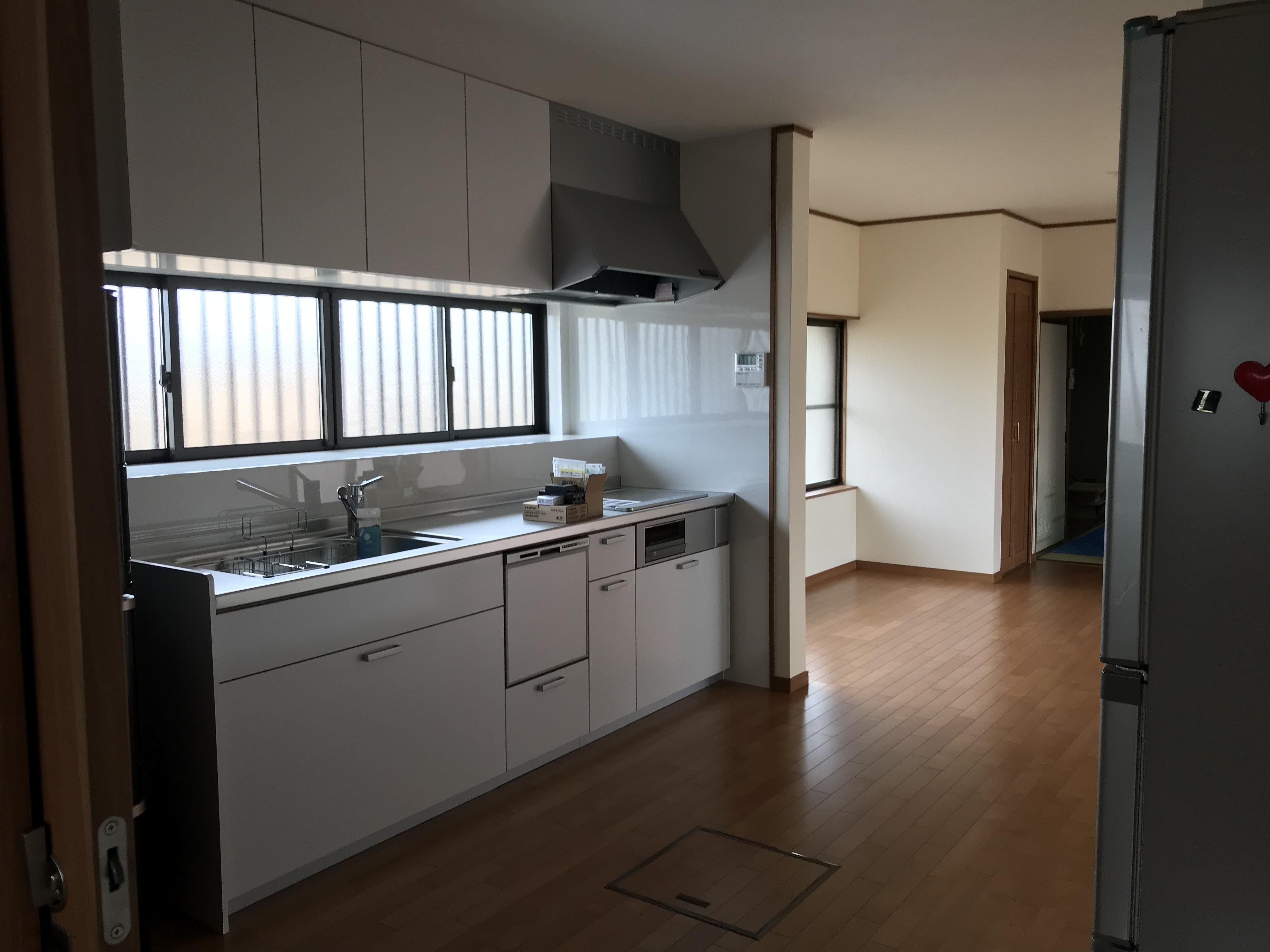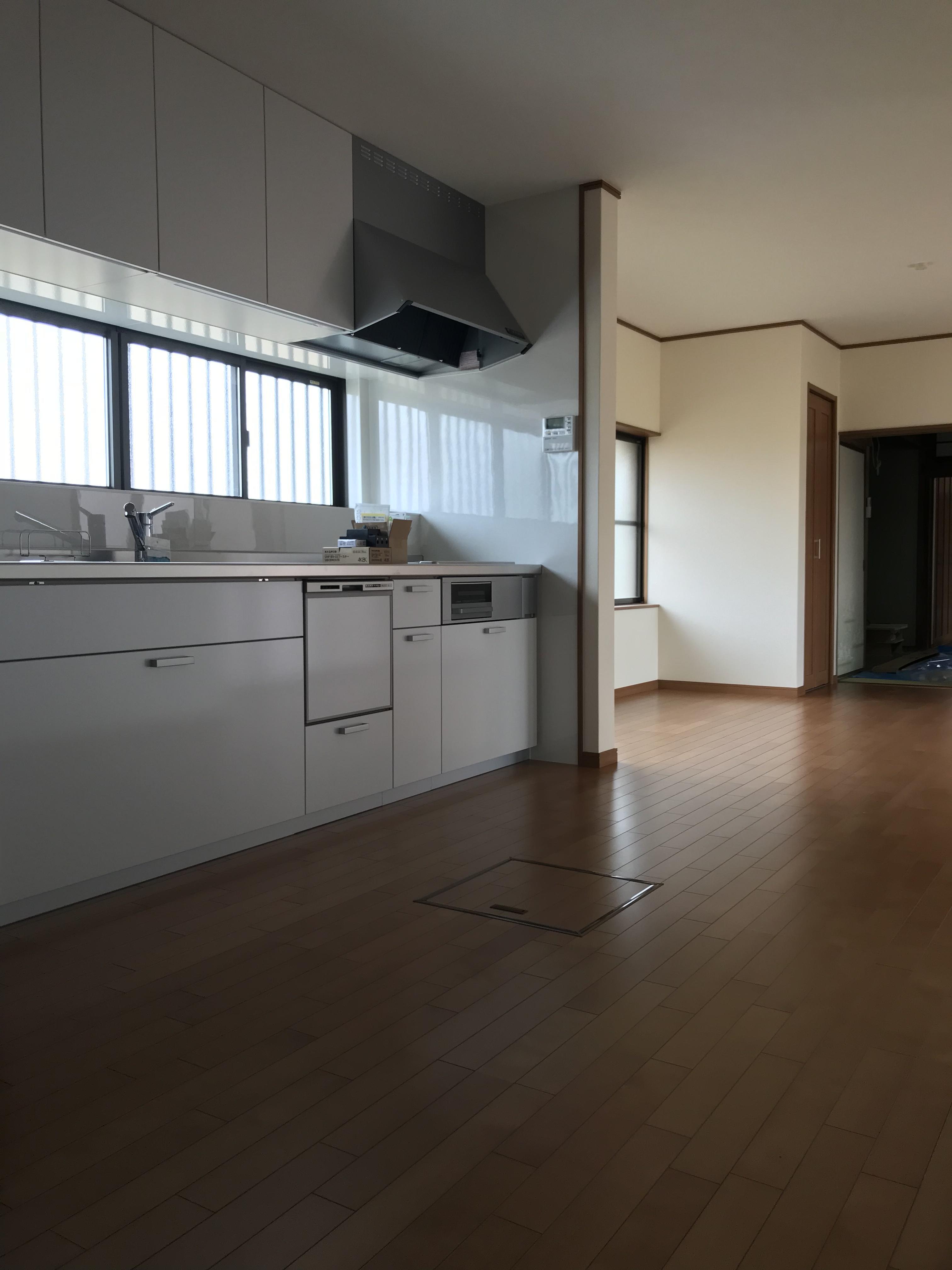U様邸 リフォーム工事 ~キッチン編~ 二部屋を一部屋にし 広い空間を作り出しました。真っ白なキッチンとキッチンパネルが清潔感のある空間を演出します。キッチンに立つのが嬉しくなりますね♪夕食のおかずが一品増えたのではないでしょうか?