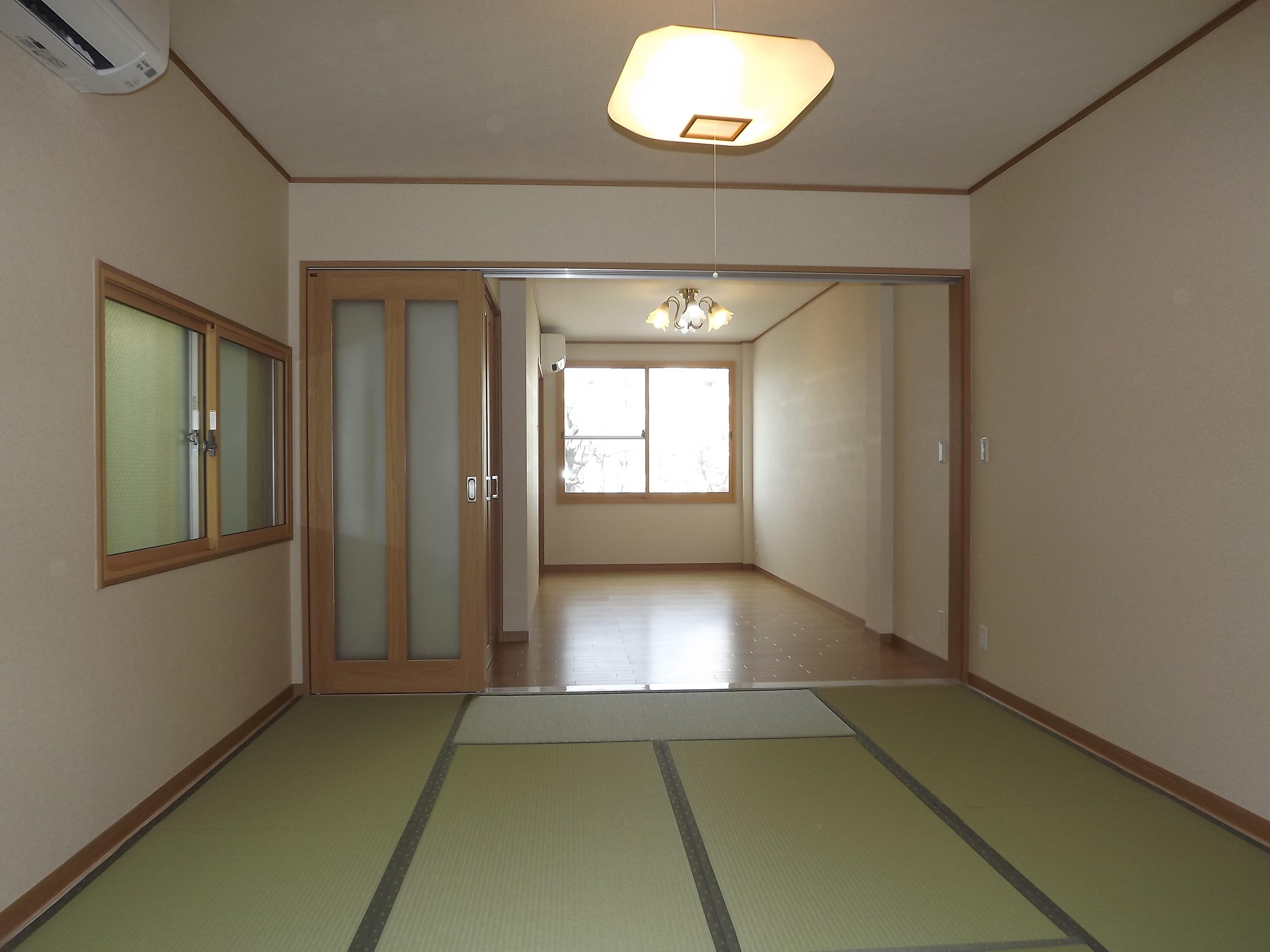 店舗を改装して住居にしたいというご要望を叶える為に・・・2階部分は、間仕切り壁を作り建具を取付広すぎる空間を仕切りました。冷暖房効率も上がり快適に過ごせること間違いなしです!!窓には2重サッシ『インプラス』を施工。窓を開けたい時にはちょっと面倒ですが、防音・省エネ効果抜群!!幹線道路や線路沿いのお住まいの方々にオススメです。