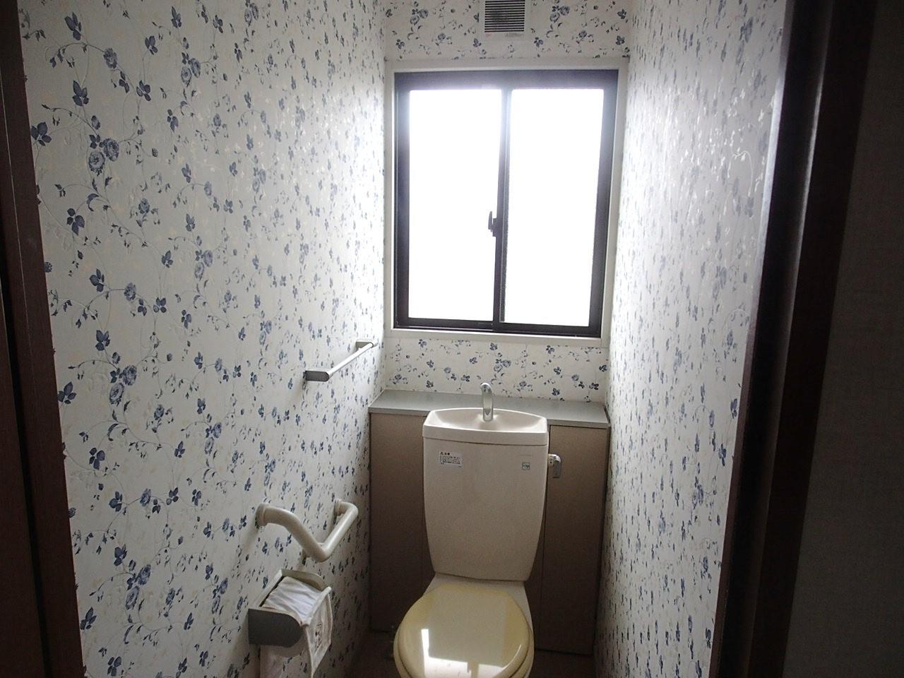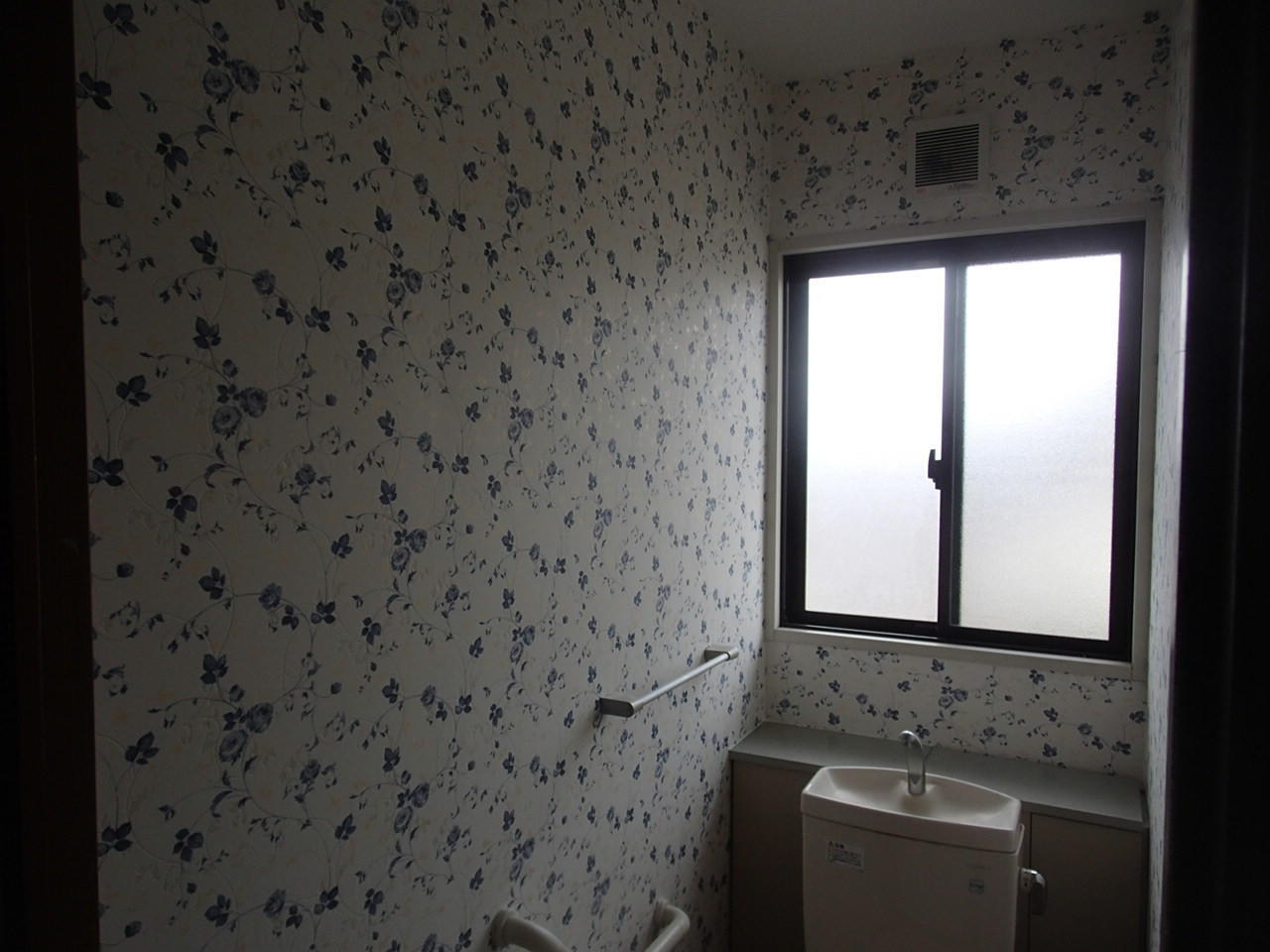 トイレのクロスの貼替え工事をしました。 殺風景だった空間が エレガントでお洒落な空間に変身!!