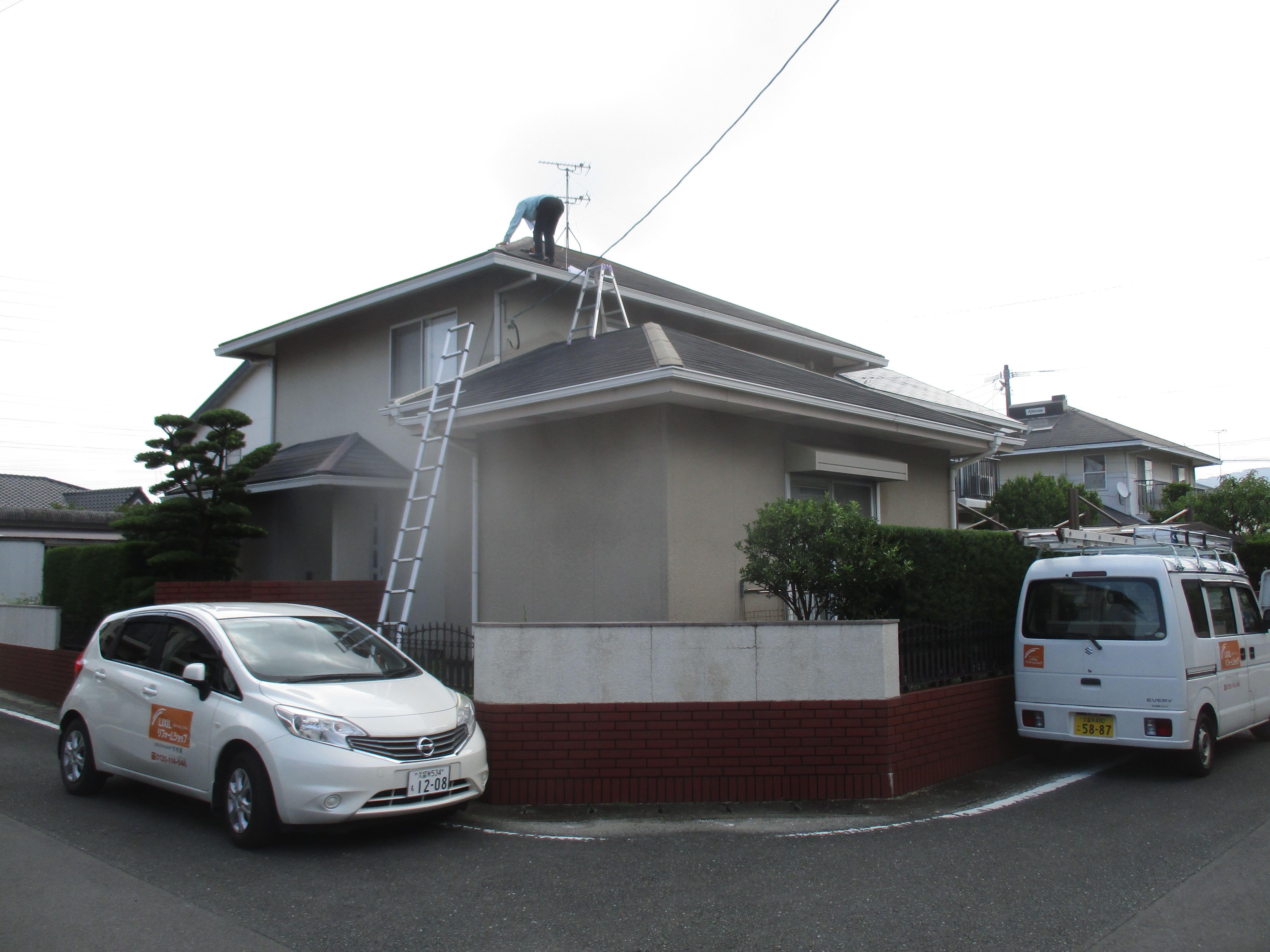 外壁塗装替え工事を行いました。 サッシの枠の色がホワイトなので黄色 桃色 緑色3パターンのご提案をしました。ご家族様でご協議していただいた結果です。とても素敵な薄いグリーン。サッシの白とマッチングして とてもお洒落なお家になりました!!