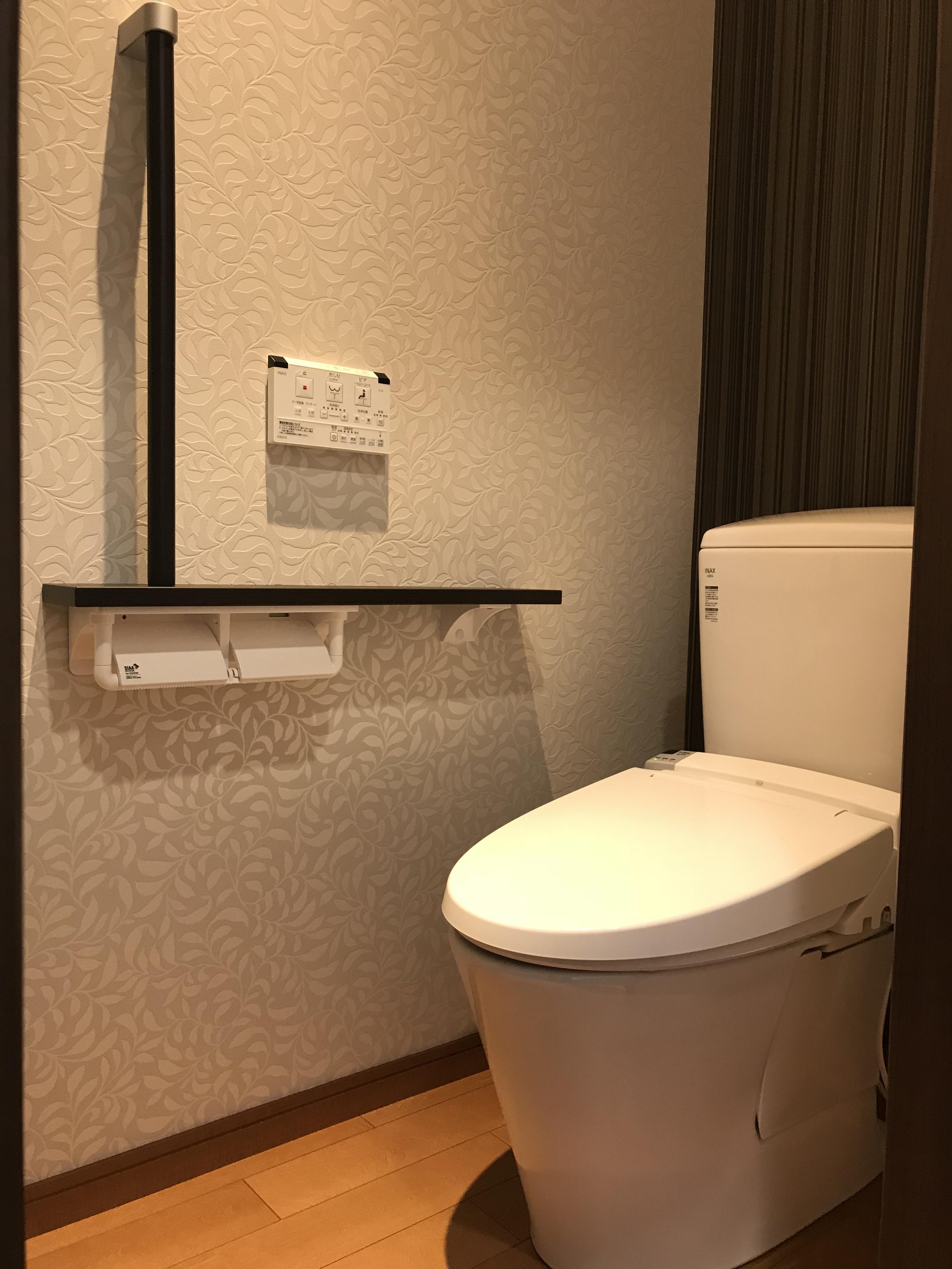 トイレがお洒落な空間に大変身しました。 アクセントクロスが白い空間をシュッとしめてくれました。 照明も電球色で暖かな空間を創り出しています。