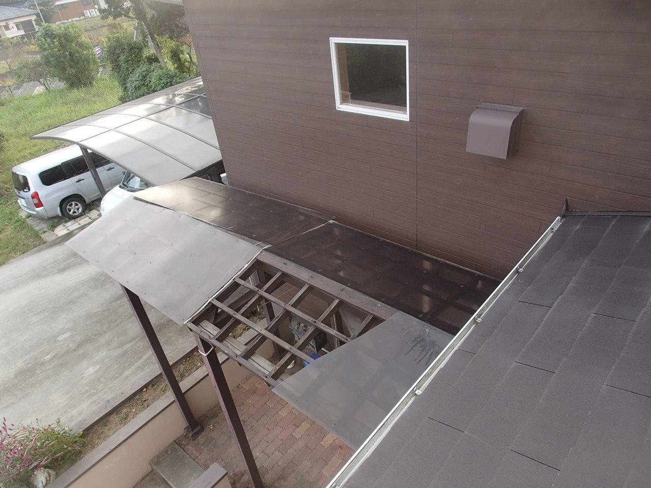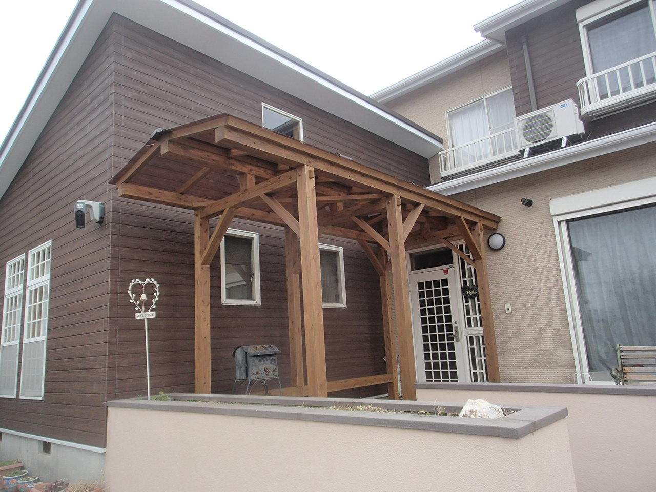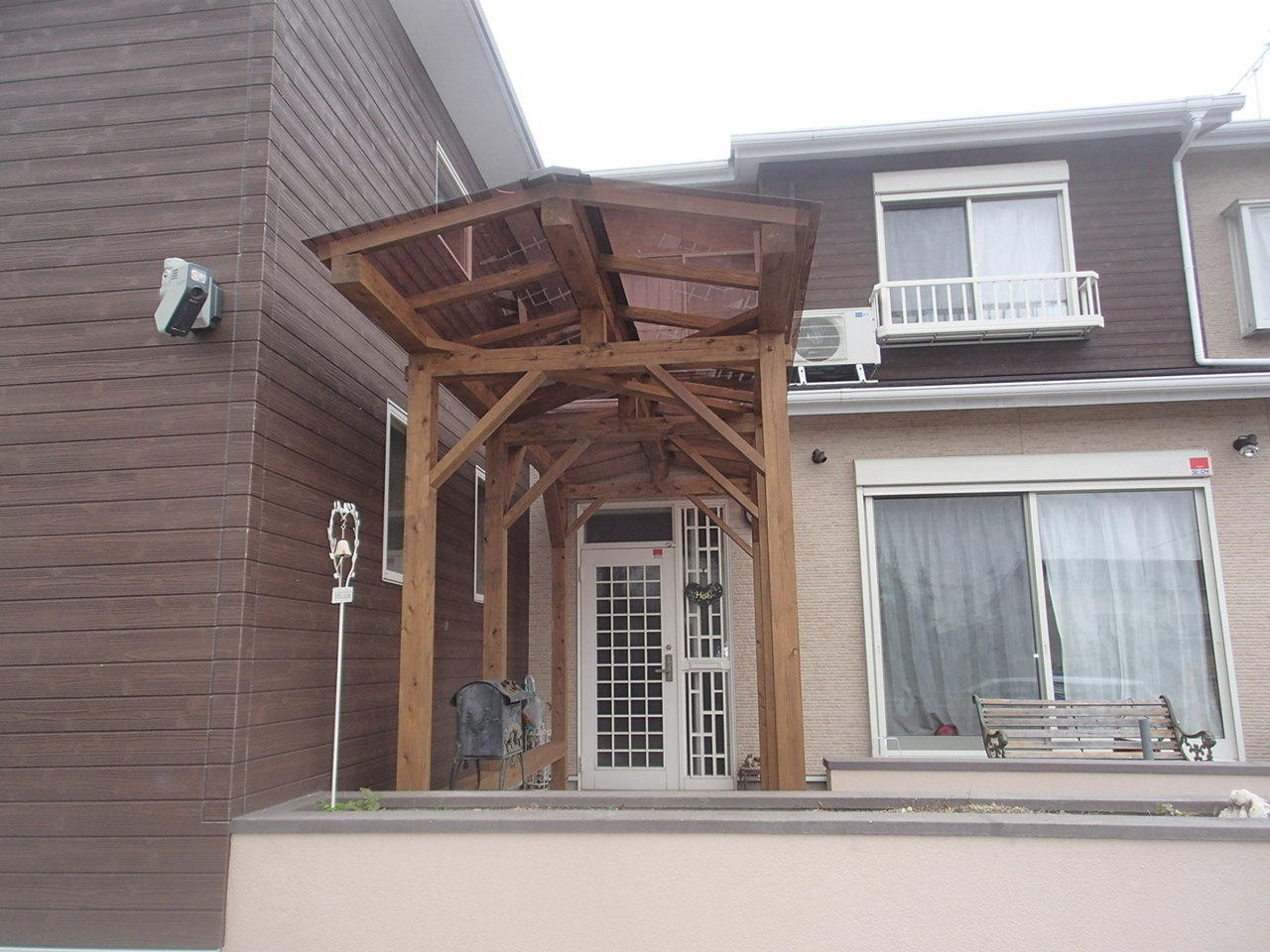 玄関のアプローチ屋根が 台風で壊れていたため造り替えました。 土台の木の部分も腐食していたので全部造り替えました。