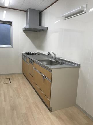 立派な給湯室が出来上がりました。イベントの時にも広々空間で楽しくみんなで調理ができますね。キッチンまわりにキッチンパネルを貼ることで お手入れ簡単!!とても助かります。