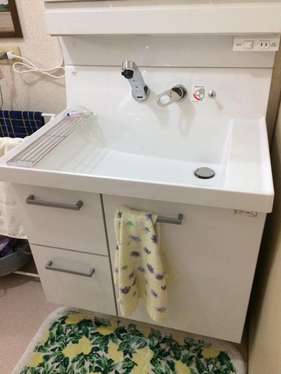 お手入れの行き届いた浴室でしたが 古い浴槽は深くて断熱性が低い・・・洗面化粧台を取替えたいとのお話から 浴室改修工事に発展しました。薄ピンクの浴槽と 浴槽まわりの赤いタイルがとても可愛く仕上がりました。ゆったりのんびり バスタイムを楽しめます!
