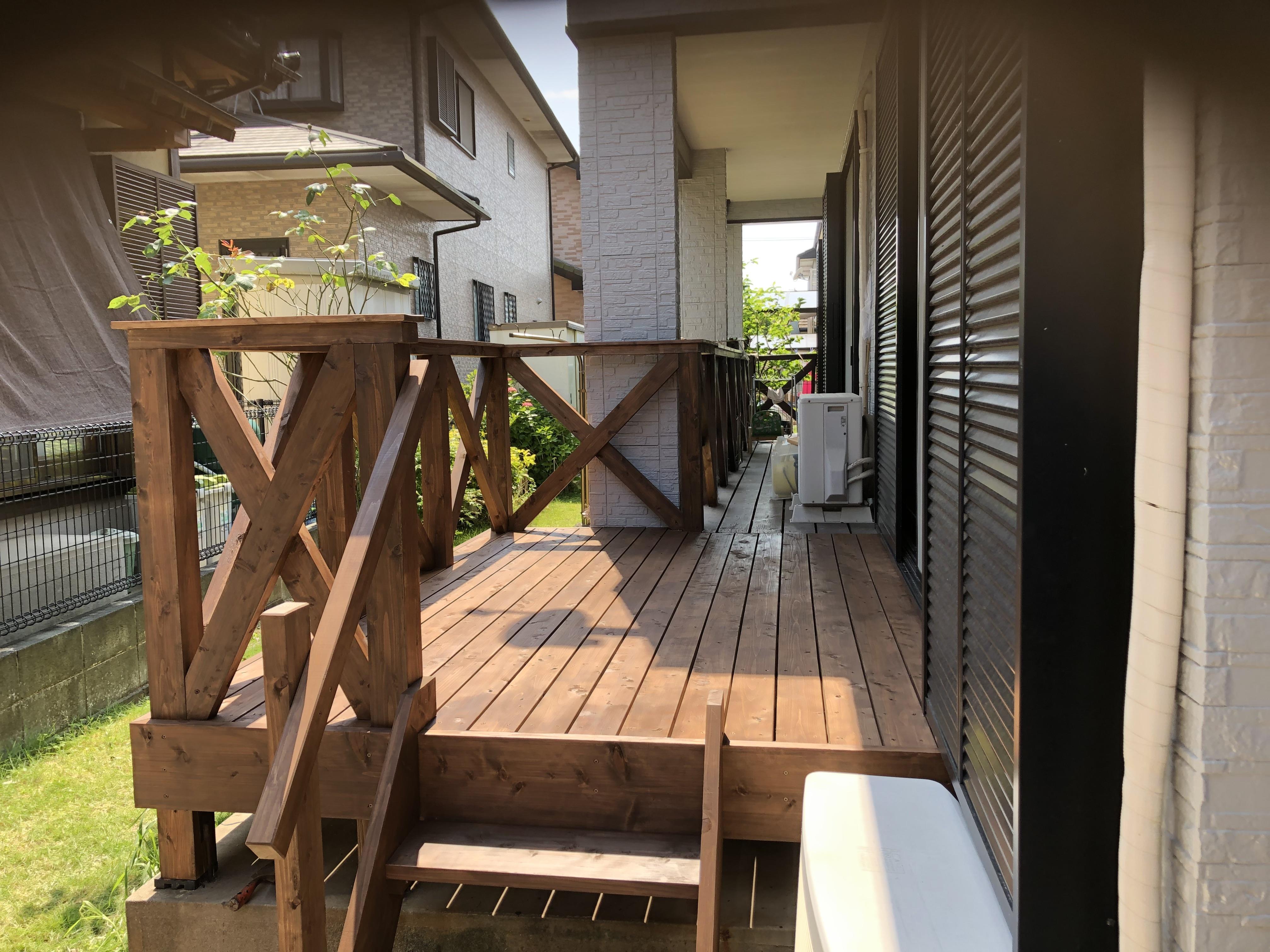 雨風にさらされ腐食してしまったウッドデッキを新しく造り替えました。ちょっと明るめの色で仕上げてもらい 見た目も一新。危険な部分もなくなり 毎日安心して洗濯物を干すことが出来ます。