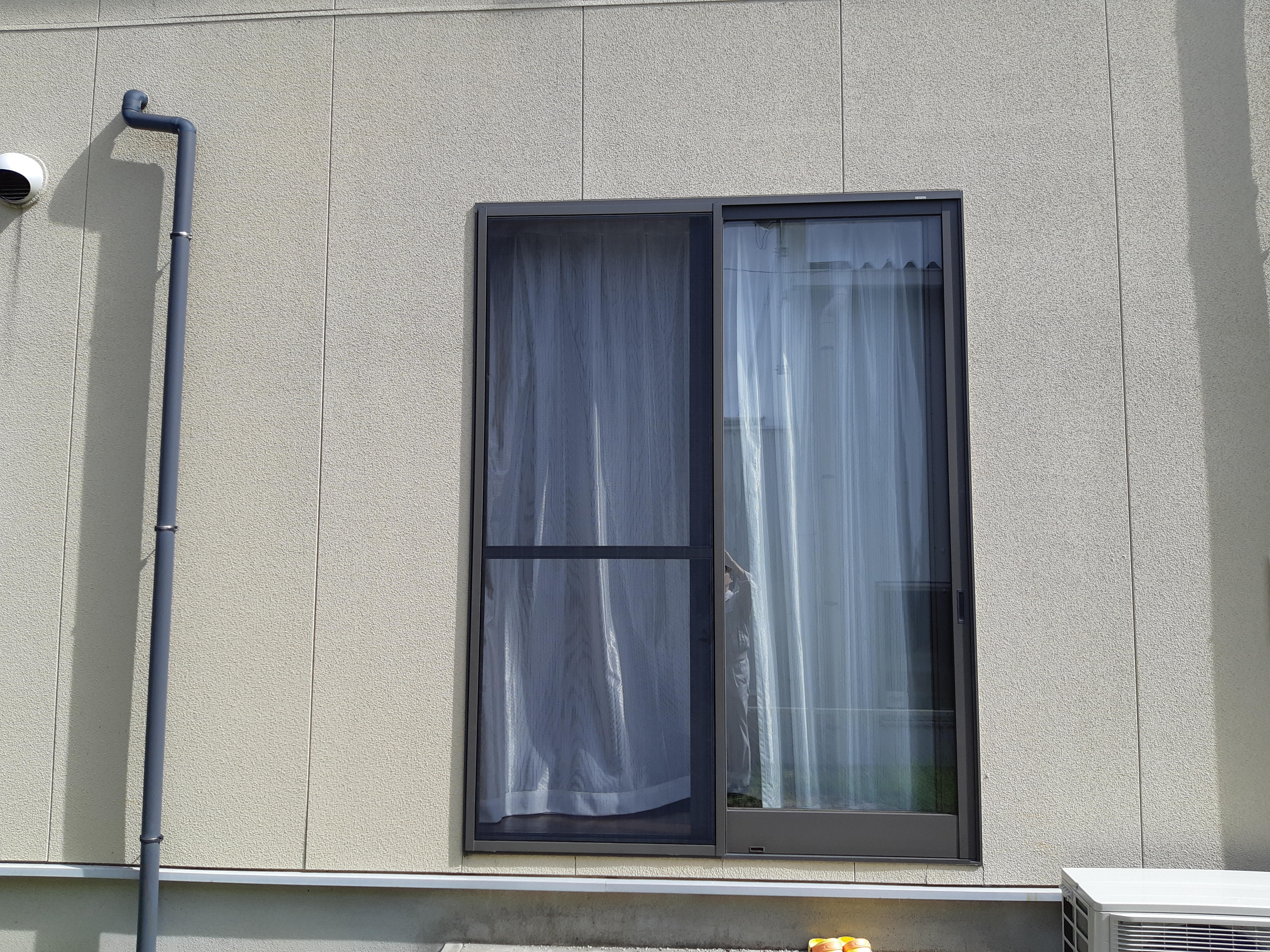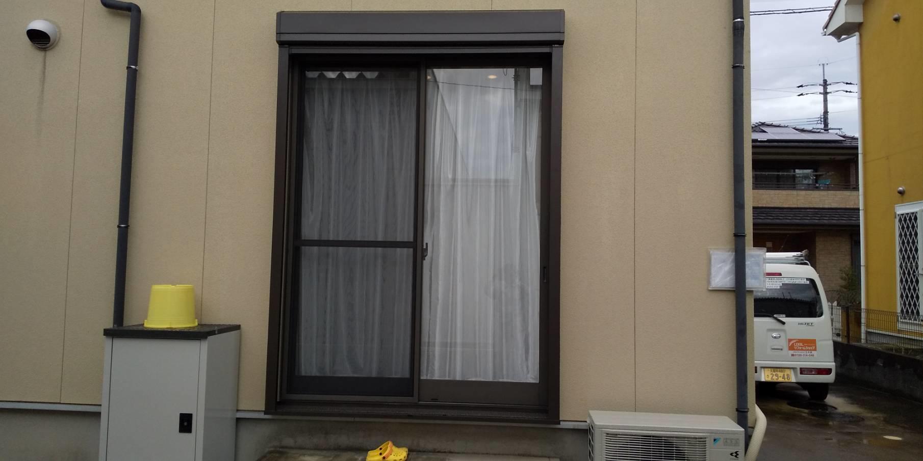 掃出し窓にシャッターを後付けしました。これで台風の時など 安心して過ごせますね。