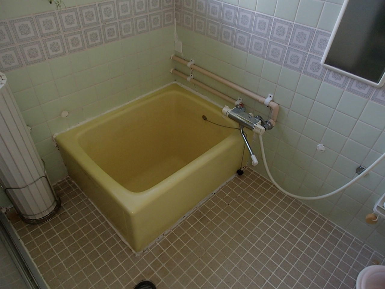 ユニットバスにするか、浴槽入替を行うか迷われていました。 お客様のお風呂の広さは1216サイズのユニットバスがギリギリ入る大きさでした。 既存の壁の内側にユニットが入る為 どうしても狭くなってしまいます。 最終的に浴槽入替 タイルの貼り替え カウンター造作をすることで決定しました。 ちょっとした温泉に来たような気分で楽しんでいただいています!!