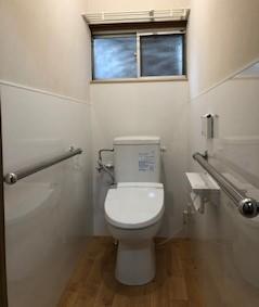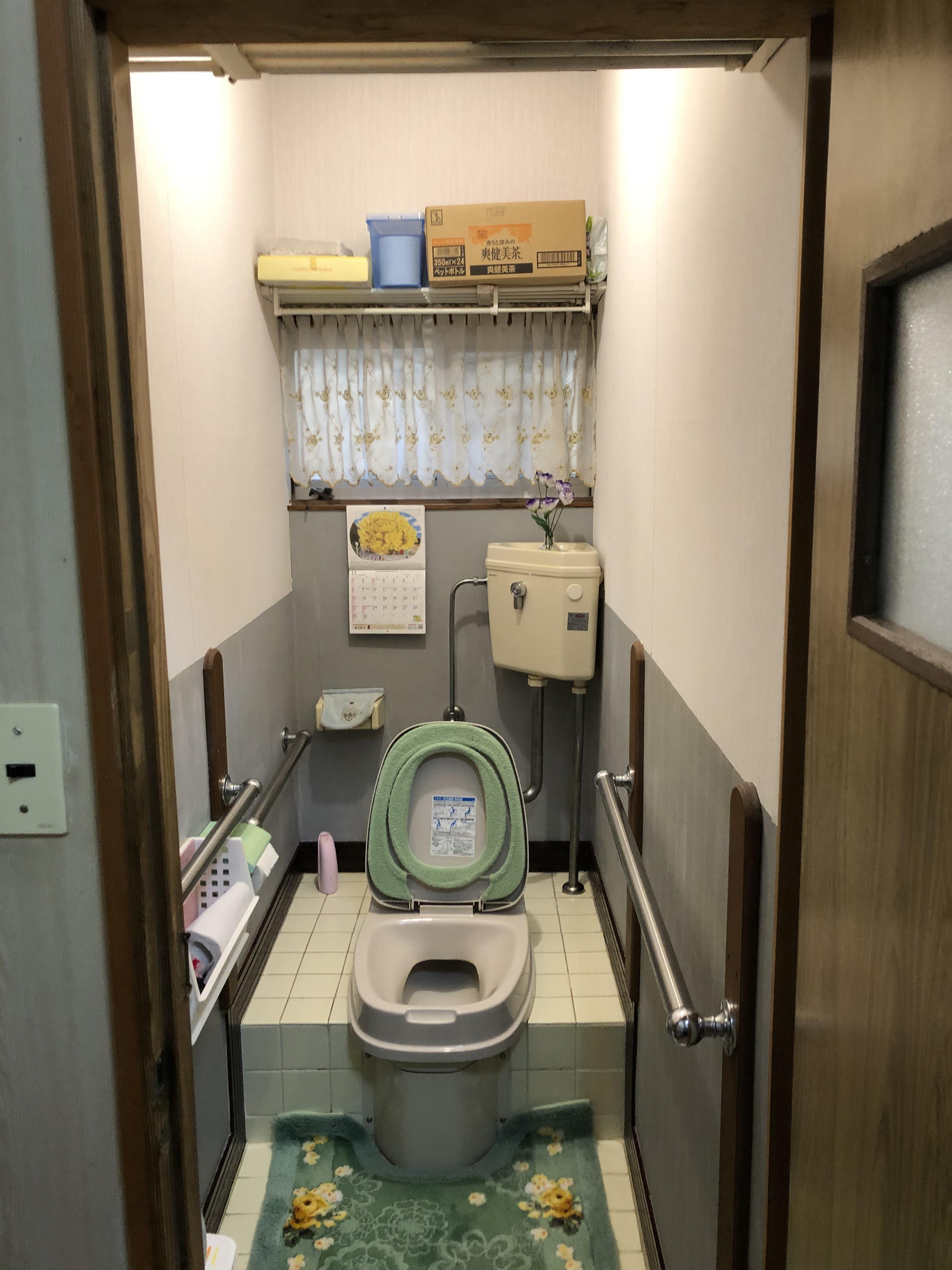 トイレを改修工事しました。 段がなくなりフラットになったことで空間が広がりました。 キッチンパネルでタイルだった部分を仕上げたので お手入れが簡単になりました!