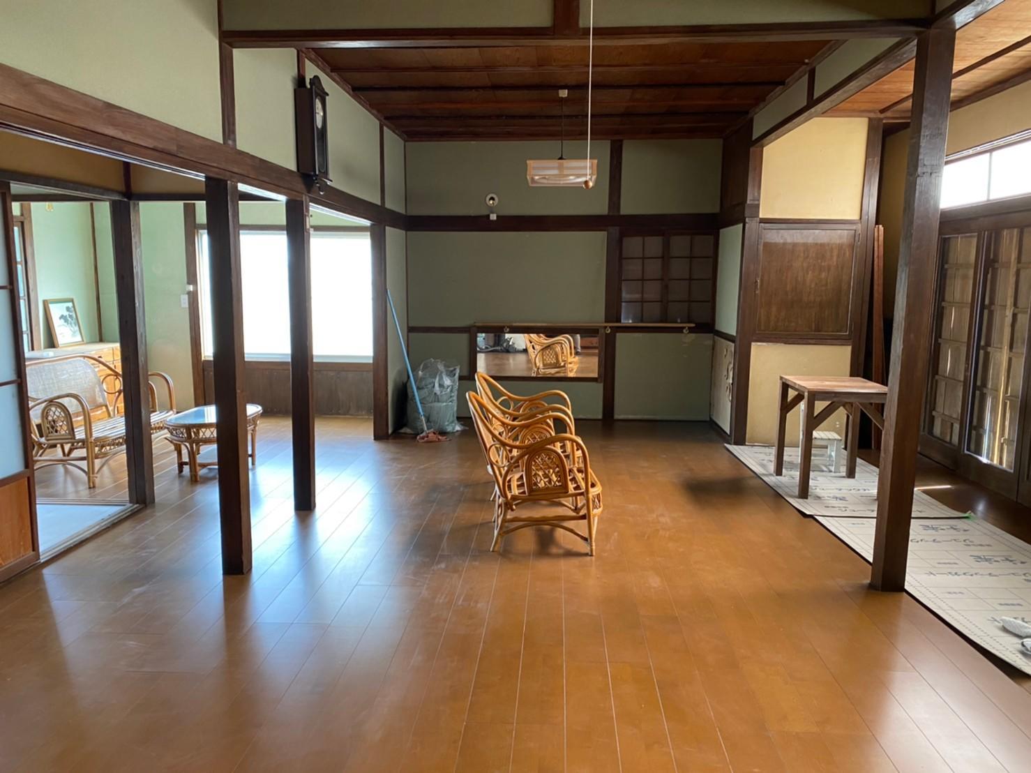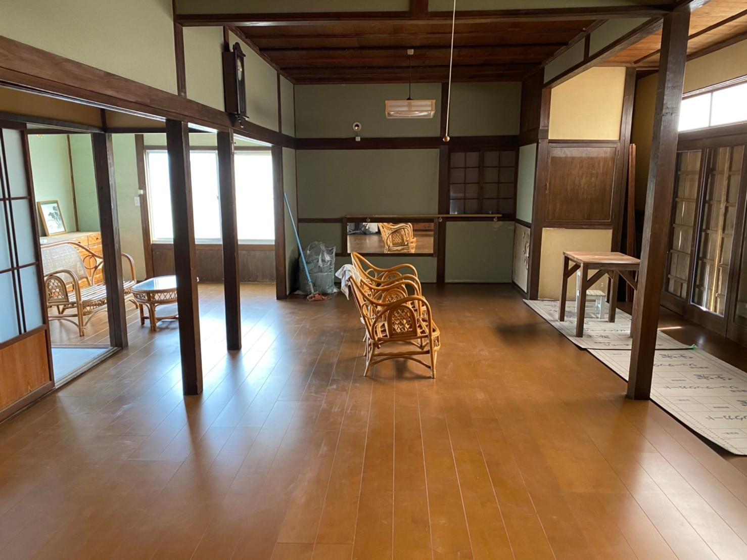 昔ながらの二間続きの和室を フローリングのワンフロアへ ヨガスペースとして使えるように壁に大きな鏡を設置しました。 床の間には欄間を再利用した ご施主様お気に入りポイント♪『飾り棚』 アンティーク好きのご施主様 木枠の窓枠 古い建具など色を塗り替えて再利用されました。 素敵な空間が広がりました。