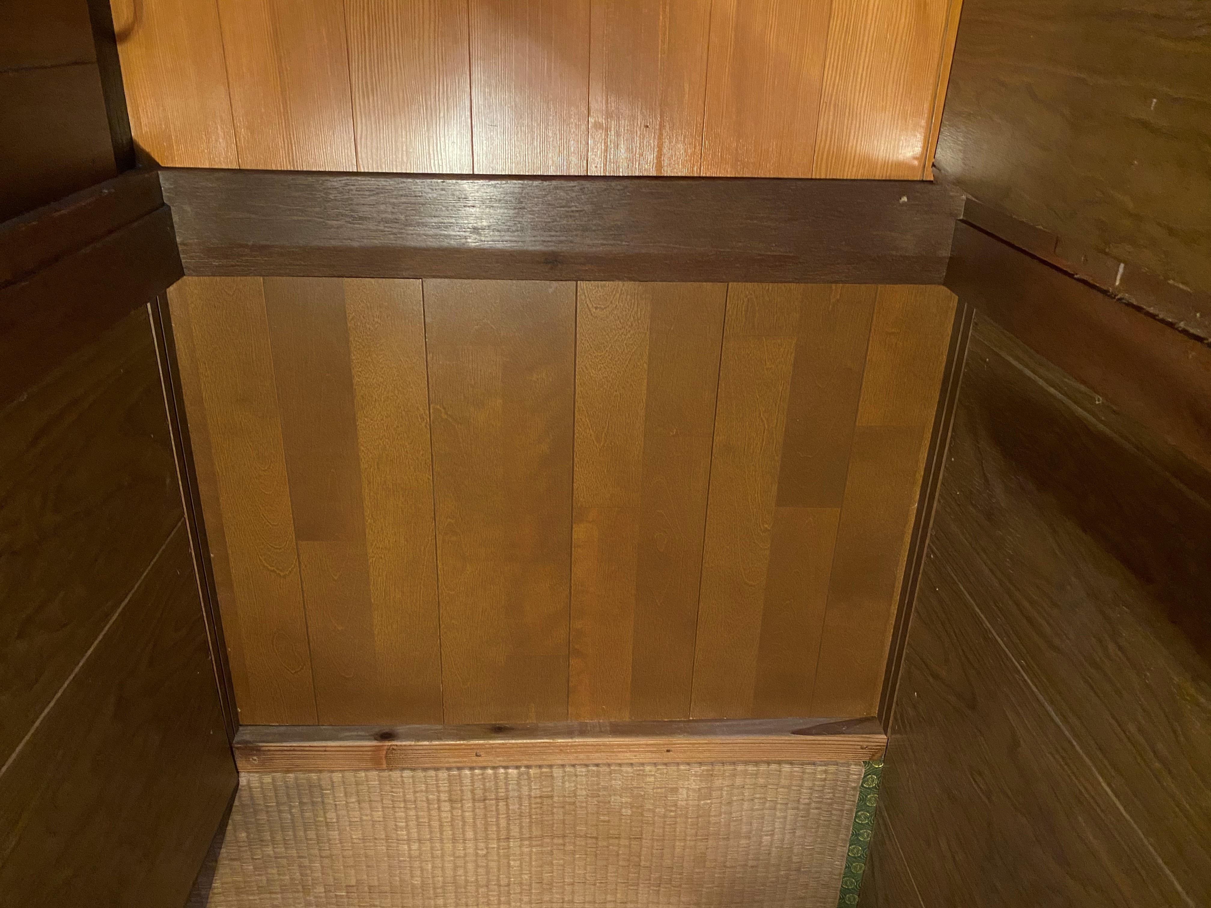 天井のシミが濃くなっているようだからとのご相談でお伺いしました。 ついでにとの事で床がブカブカしている所の修繕をご依頼頂きました。 敷居の段差があったので 5.5㎜のべニアを張り足した上にフローリングを張り足しました。 お家のかかりつけ医としてこれからもよろしくね!と心強いお言葉を頂きました。