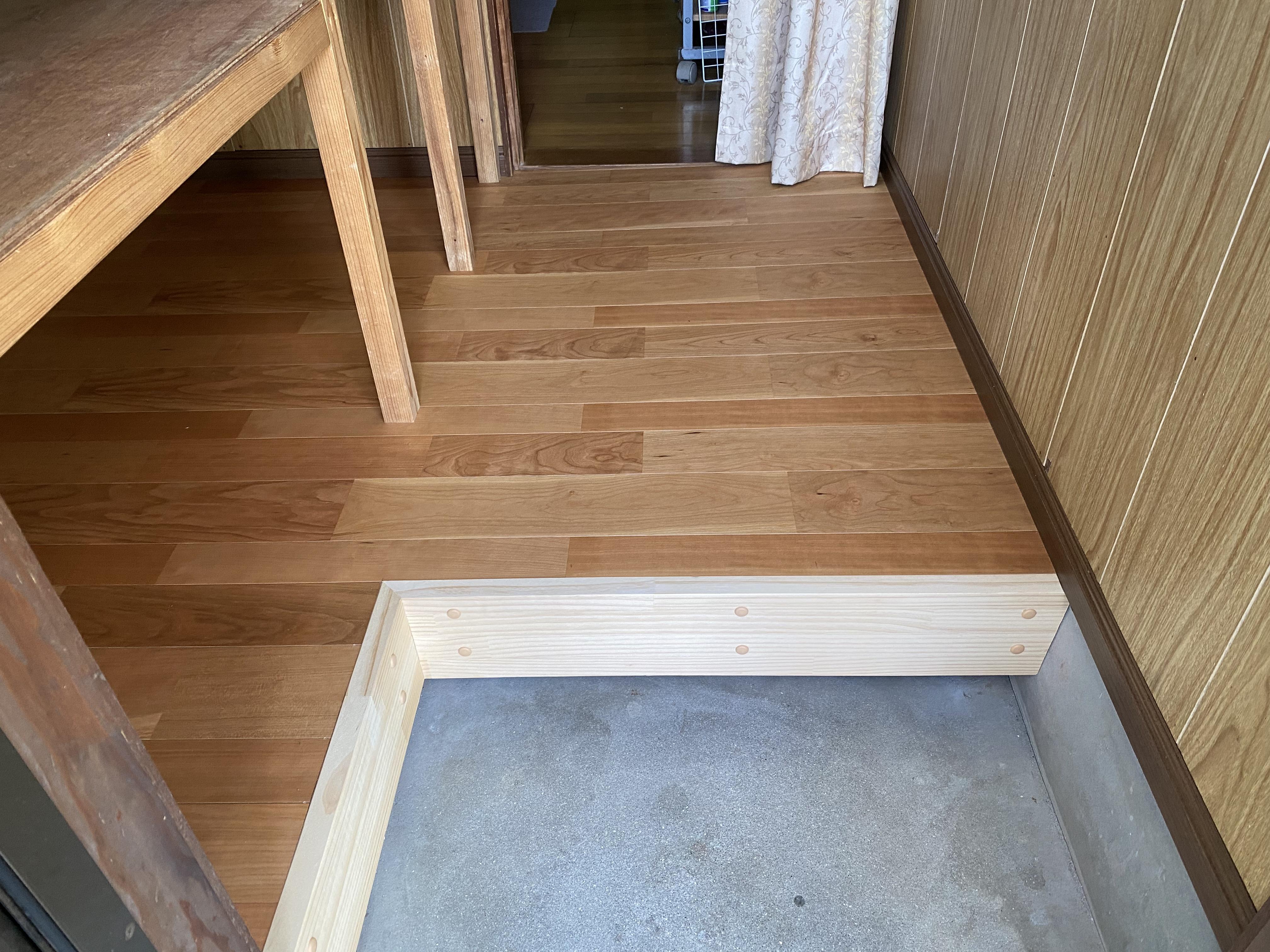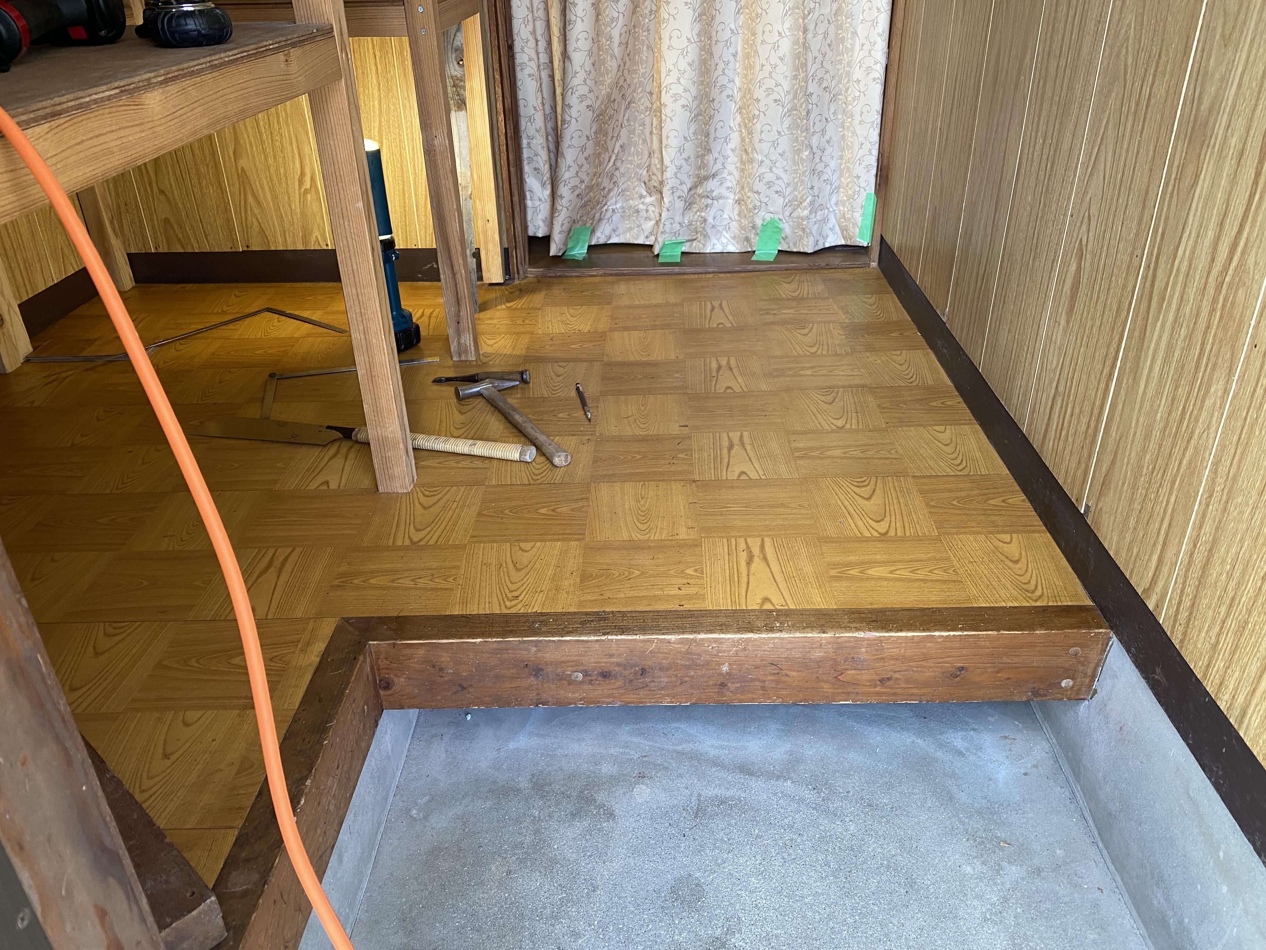 床がブクブクするとのご相談。 1日工事で床の張り足し工事をしました。 明るくなり ブカブカもなくなり快適に過ごせますと喜んで頂きました。
