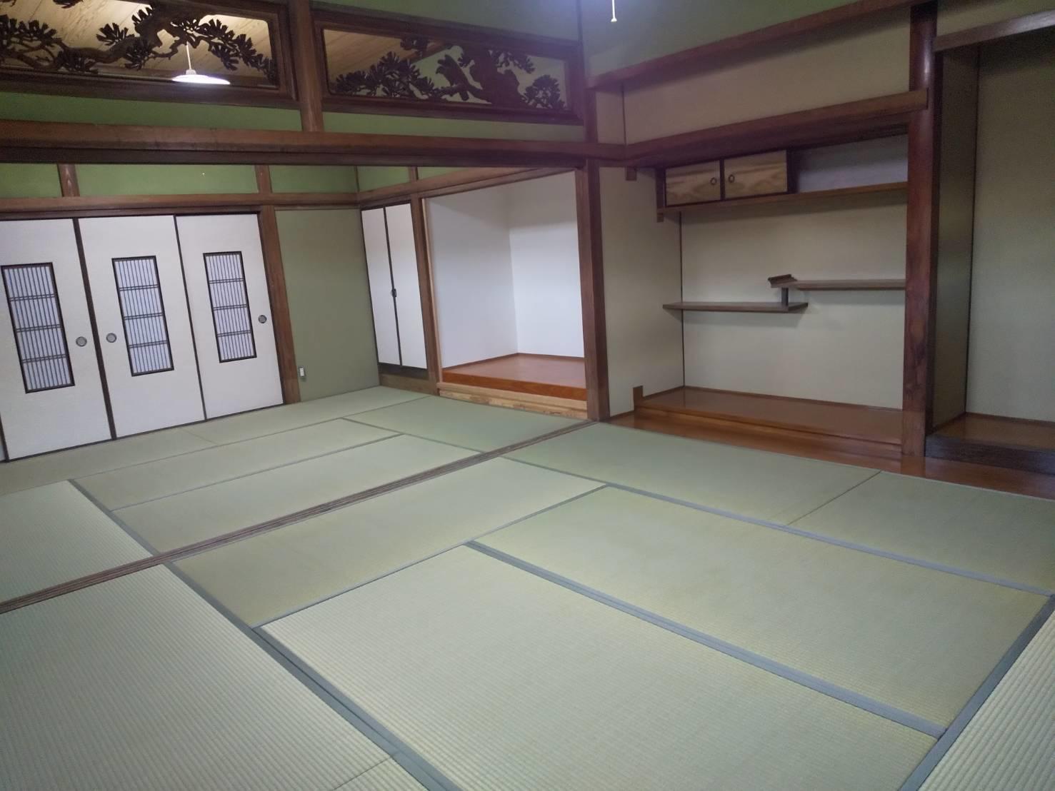 昔ながらの2間続きの和室。 和室の改装工事をさせて頂きました。 天井・壁をクロス仕上げに。清潔感のある明るい空間に仕上がりました。