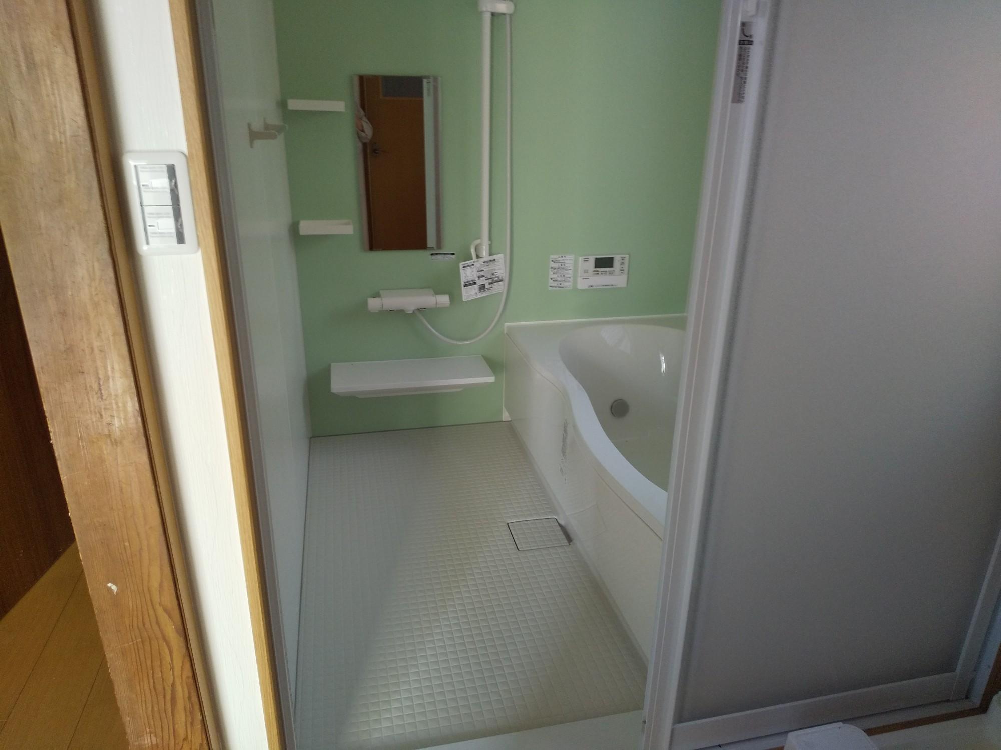 もともとの在来浴室は0.75坪の広さでした。 せっかくリフォーム工事をするなら 広いお風呂に入りたいとのご要望がありましたので 脱衣所の広さを変えずにダイニングキッチン側にお風呂の空間を広げ1坪タイプのユニットバスを施工しました。 広くなった浴室に大満足のご施主様でした!