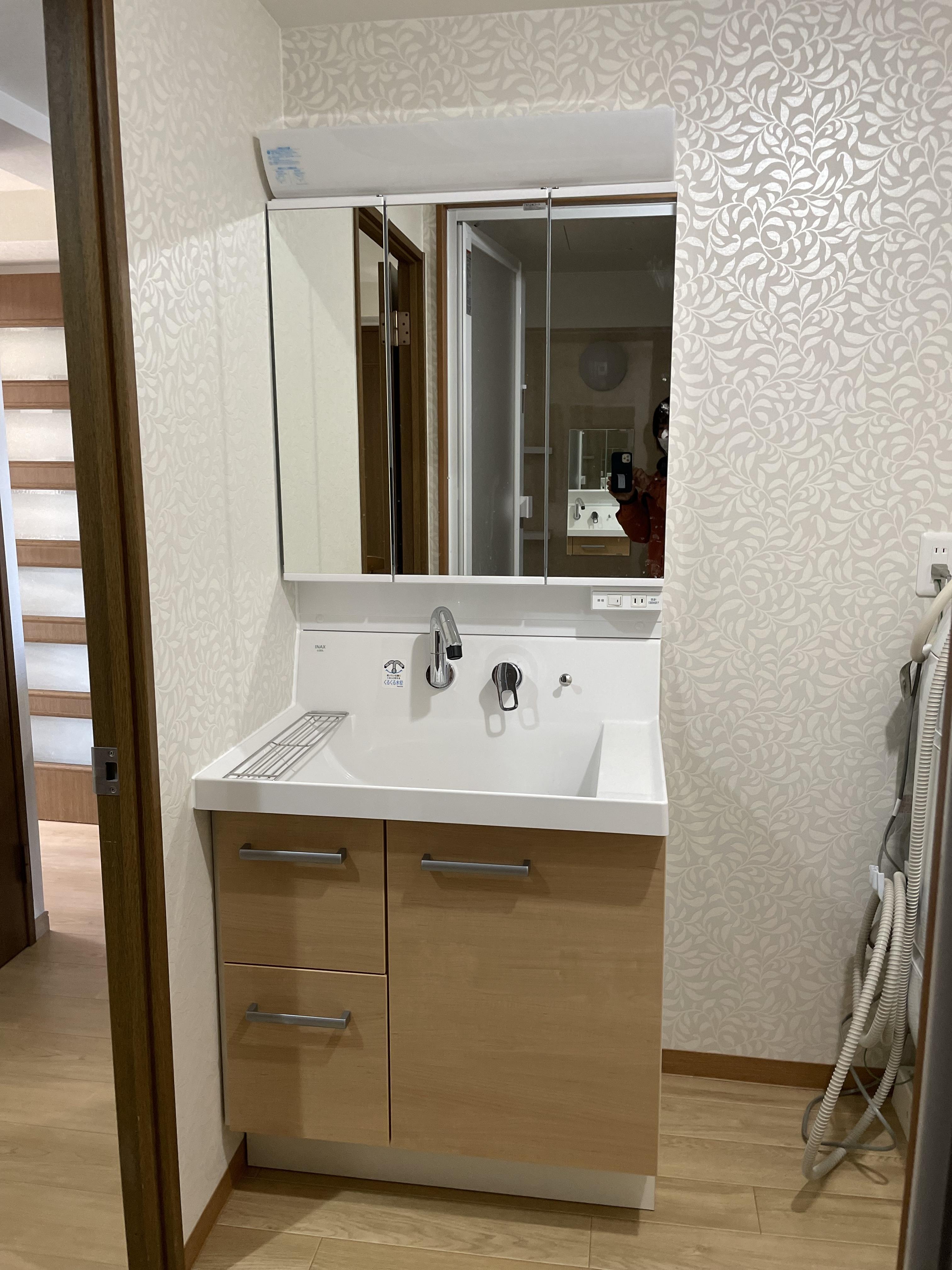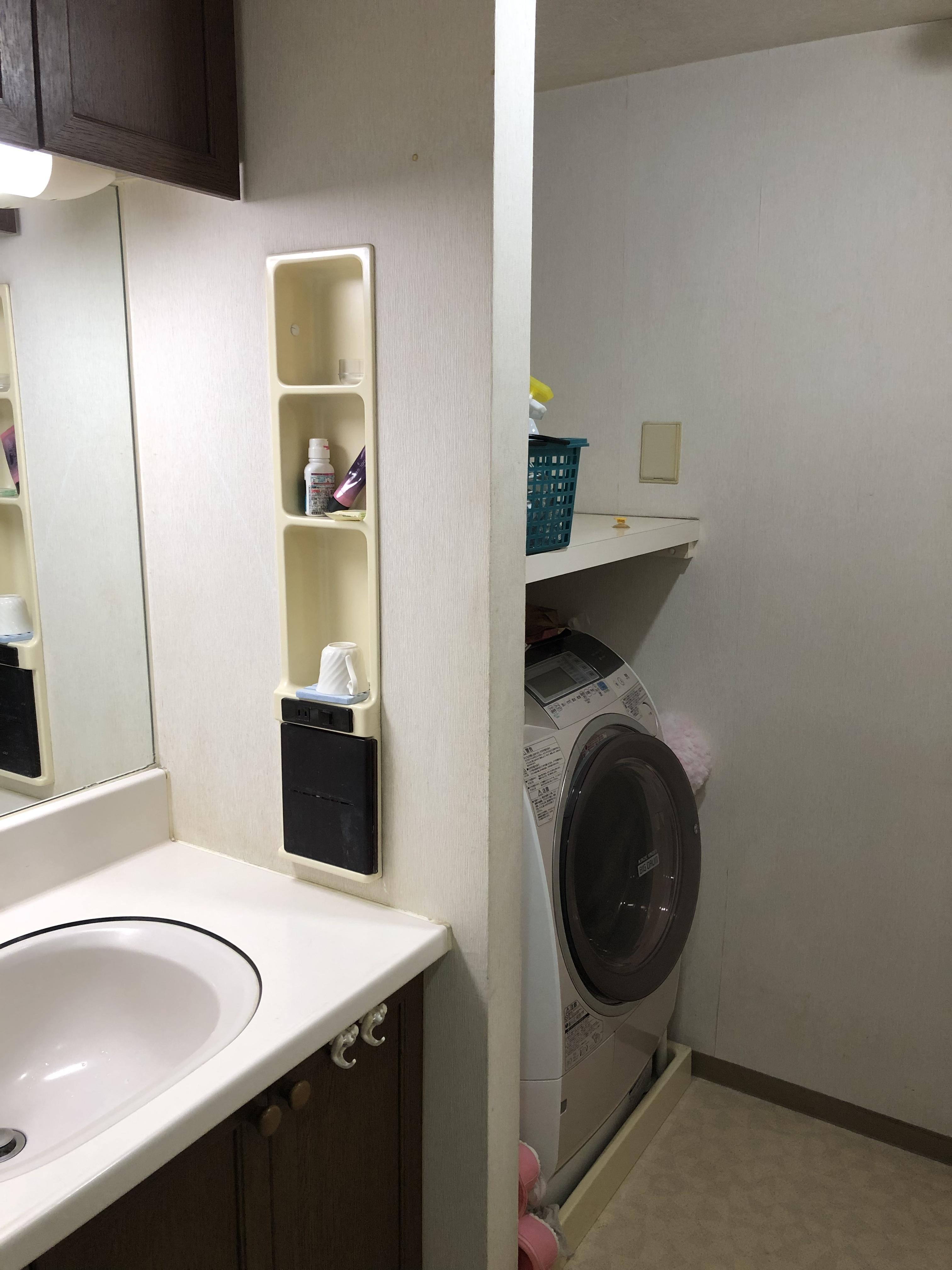 広すぎる洗面化粧台のお陰で 洗濯機スペースが手狭な感じが… コンパクトに見えるけど ちょうどいいサイズ 使い易くて お手入れも簡単! 洗面室が広く 使い易くなりました。