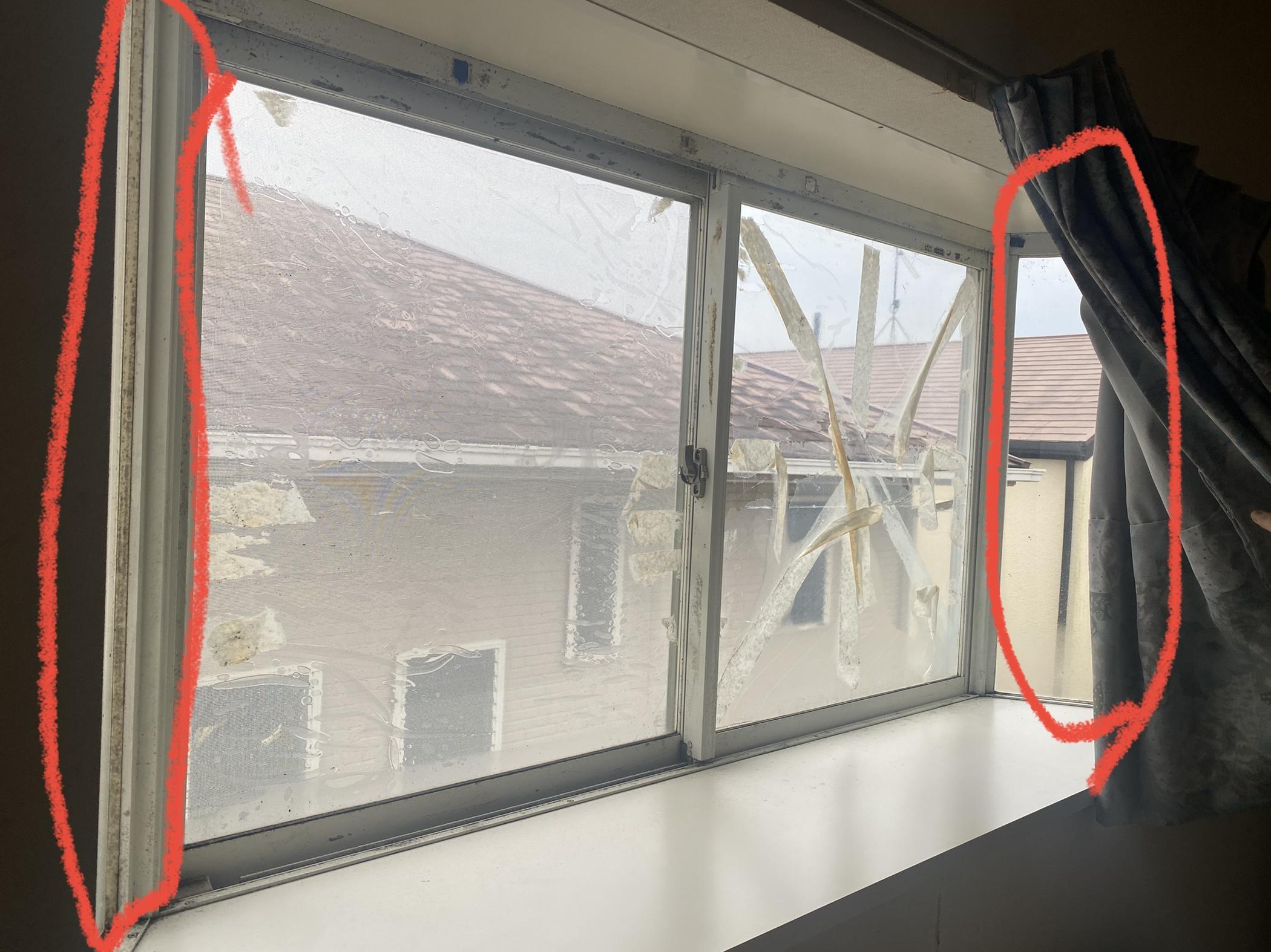 以前貼ったフィルムを剥ごうとしたけど 全然剥げなくて… ガラスを取替えられるかな?というご相談でした。 引違いの窓だけではなく 両脇のFIX窓のガラスまで一緒に交換することになりました。 工事時間は約1時間。 ゴムパッキンも取替えて スッキリ綺麗になりました。