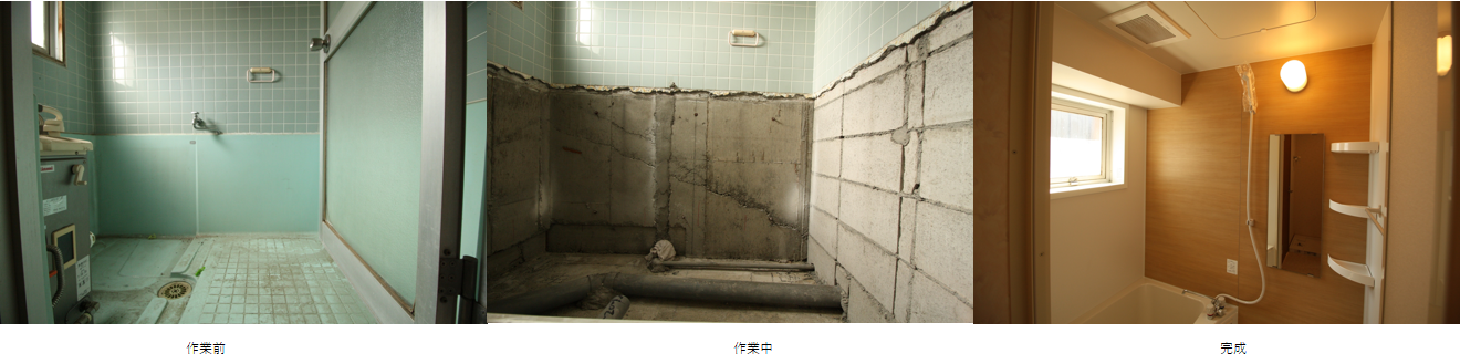 タイル張り風呂釜込の狭い浴室を広々リフォーム