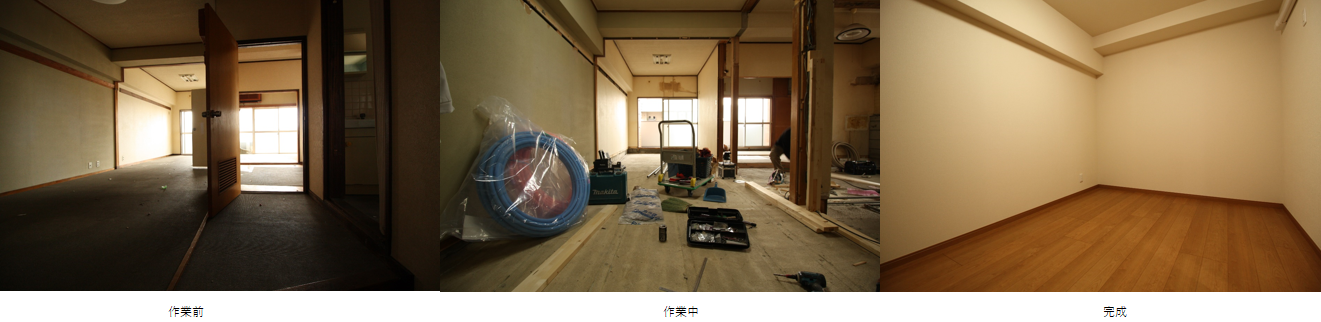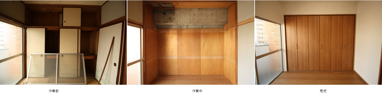 ウメックスホームのマンションフルリフォーム(空室)の場合は、一度スケルトンにしてから各部屋の機能に合わせて造作していきます。