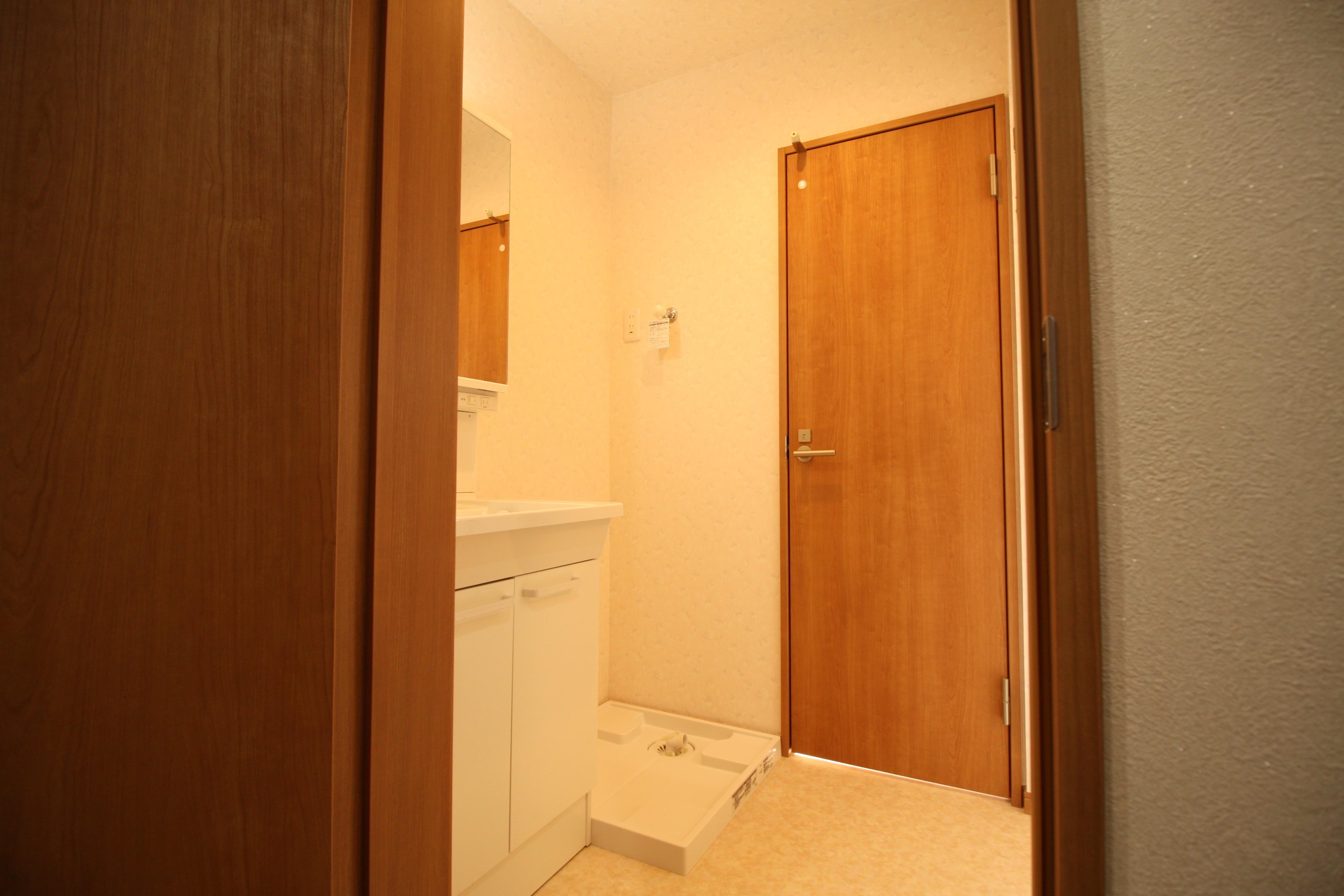 寒々しく必要最低限の機能しかなかった洗面、トイレの空間でした。木材を利用することで温かみのある空間にリフォームしました。