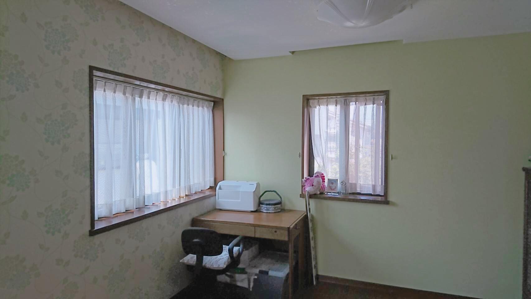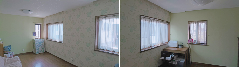 共に明るいお部屋でしたが、どちらも6畳ほどの空間をクローゼットで2部屋に仕切られていました。家具を設置すると写真のように圧迫感がありお施主さまもあまり有効活用されてなかったようです。