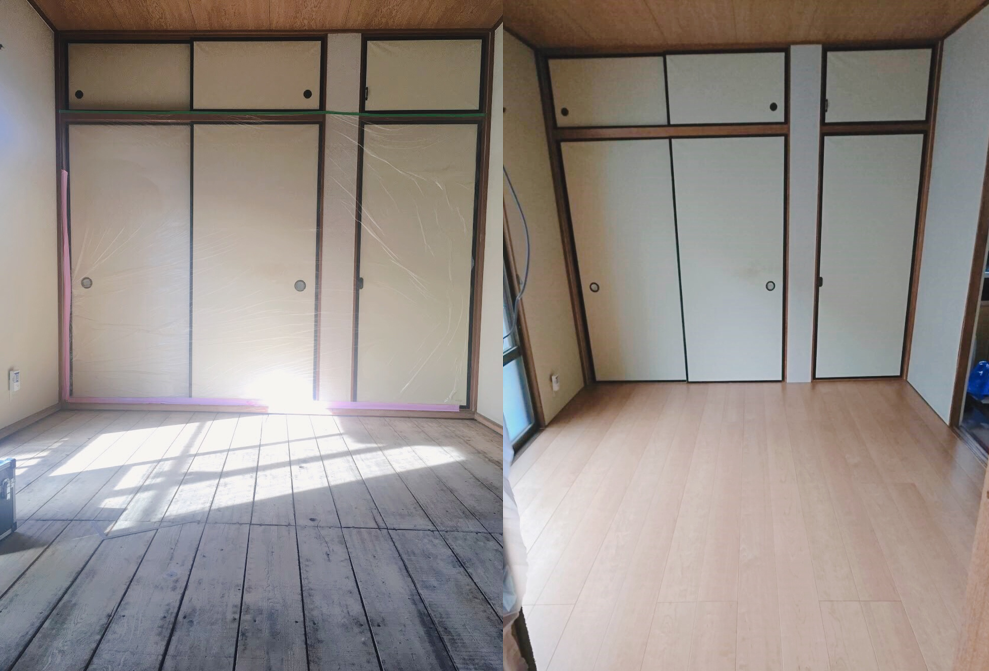 介護用ベッドを導入するため畳敷の和室をフローリングに変更しました。