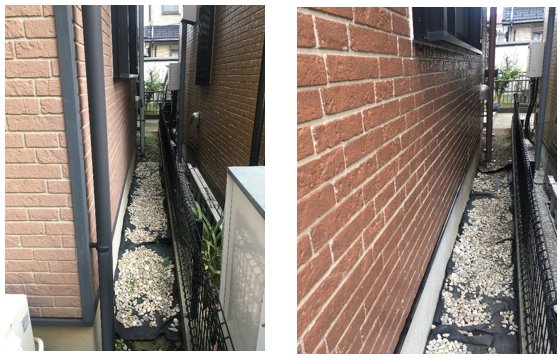 今回ご紹介する外壁塗装の例は下地を活かしたクリア(透明)塗装です。外壁にブロック調やロック調などの模様があって、今まで通りの質感を維持したい方に人気の色です。無色透明ですが、ツヤ感が戻るので人気があります。