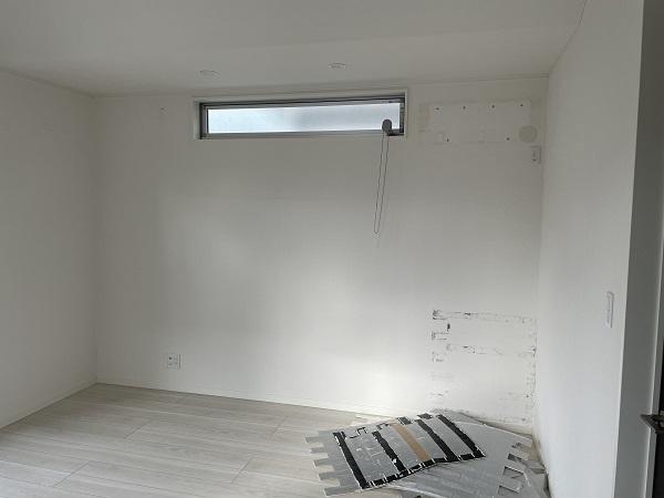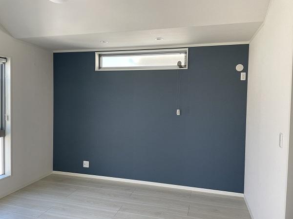 壁一面のみクロス貼替を行いまいた。 周りの白ととても相性がいいですね。 ネイビー色も色が濃すぎず薄すぎず丁度いい色合いです。
