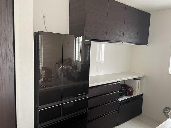 新たにアレスタのカップボードのみを設置させて頂きました! 色合いも扉や、冷蔵庫とマッチしていておしゃれな感じです! とても似合っていると思います!! ありがとうございました!!