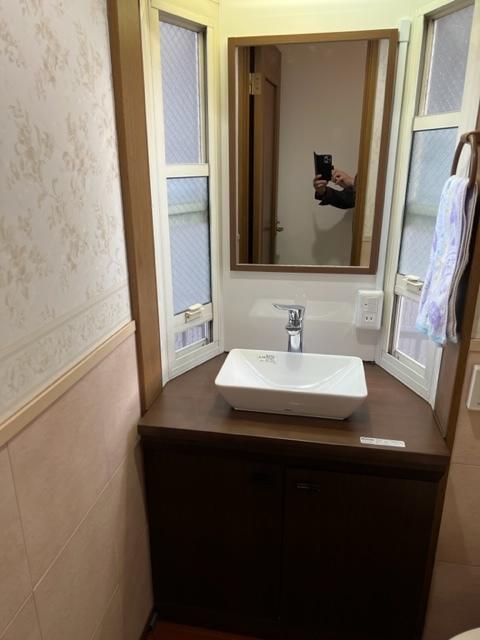 旧TOSTEMの洗面出窓MB型の洗面台をキレイにしたいというお問合せで、造作にてカウンター式にしてみました。