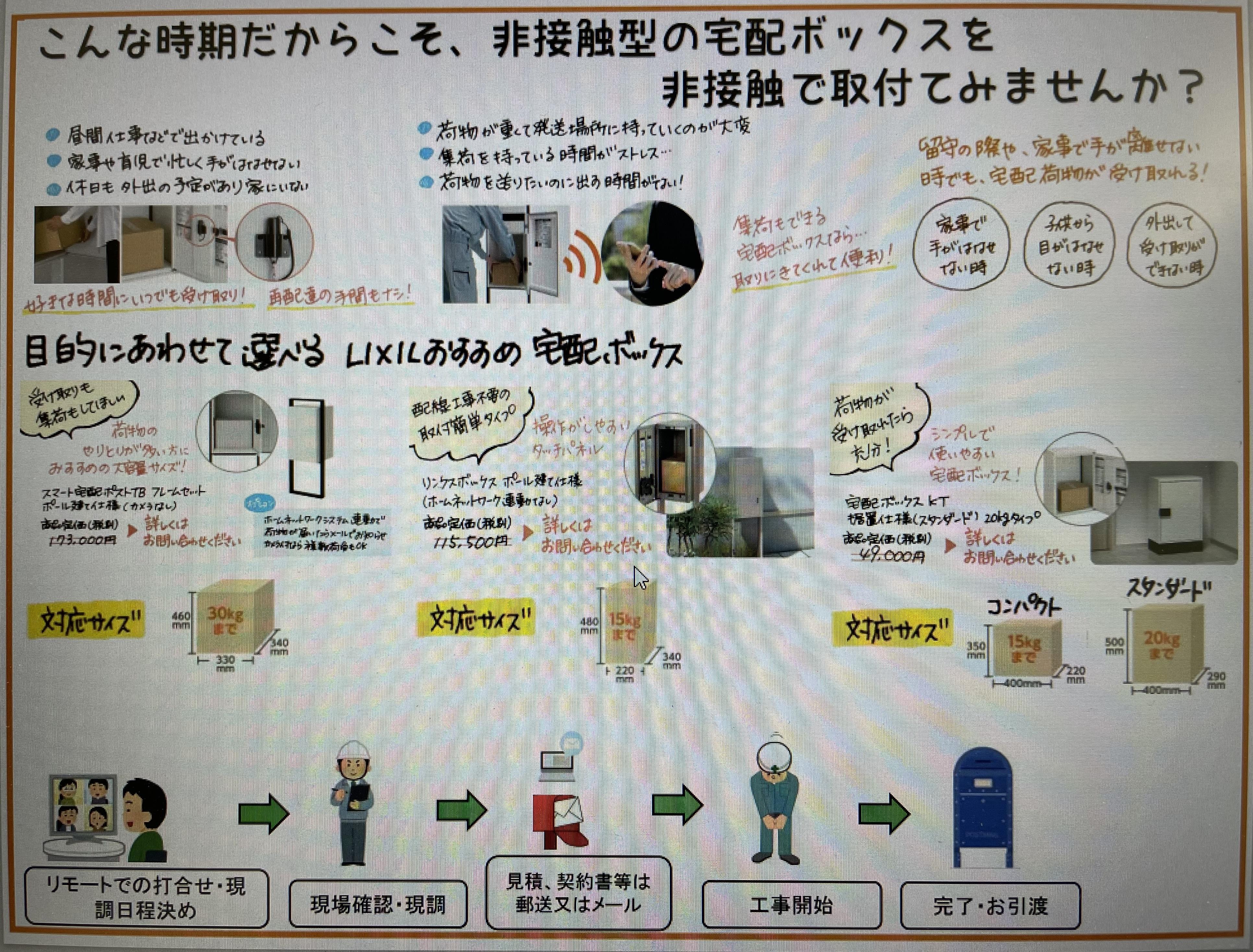 当店では、非接触型の宅配ボックス取付を非接触で施工を行えます!