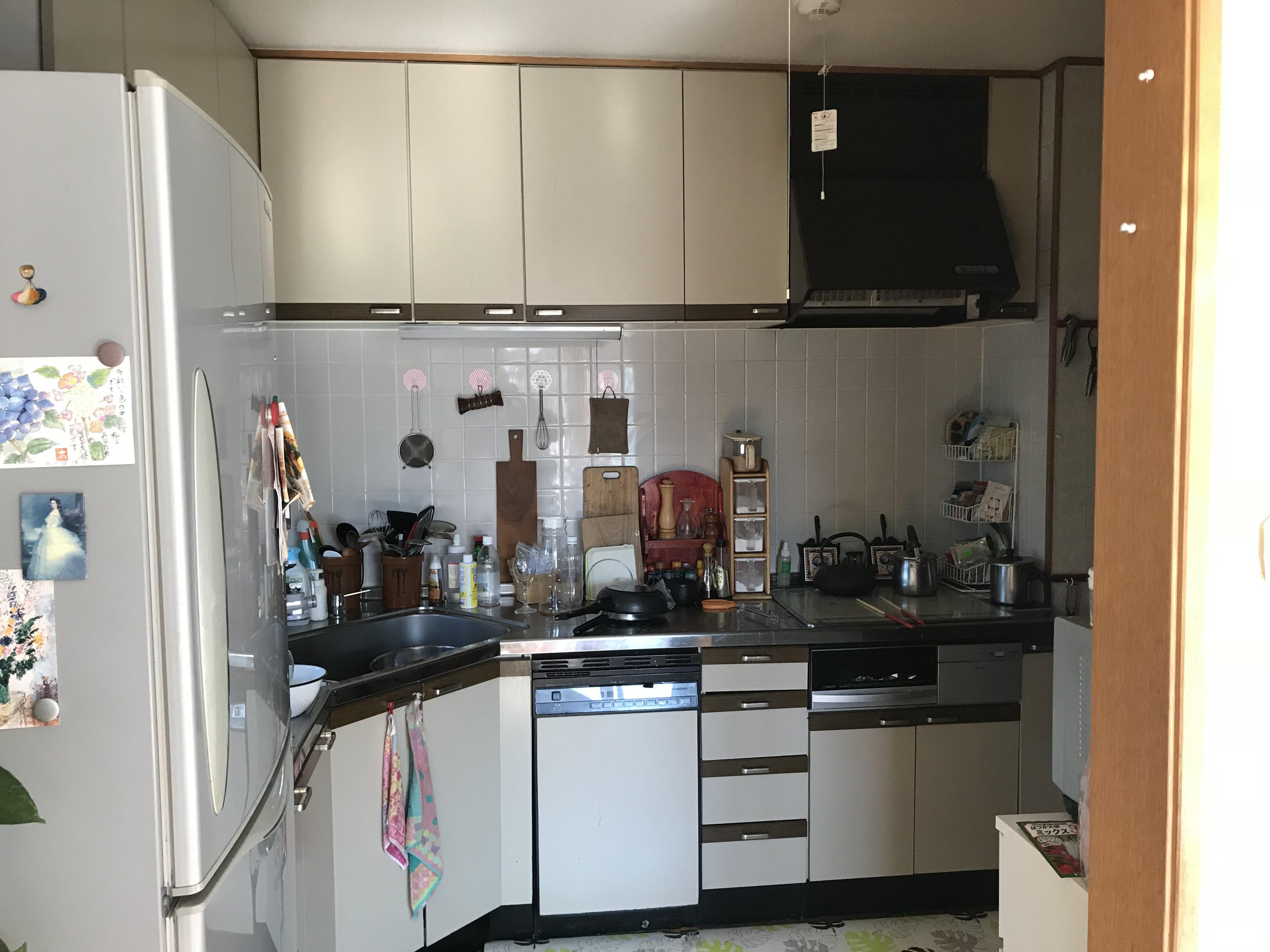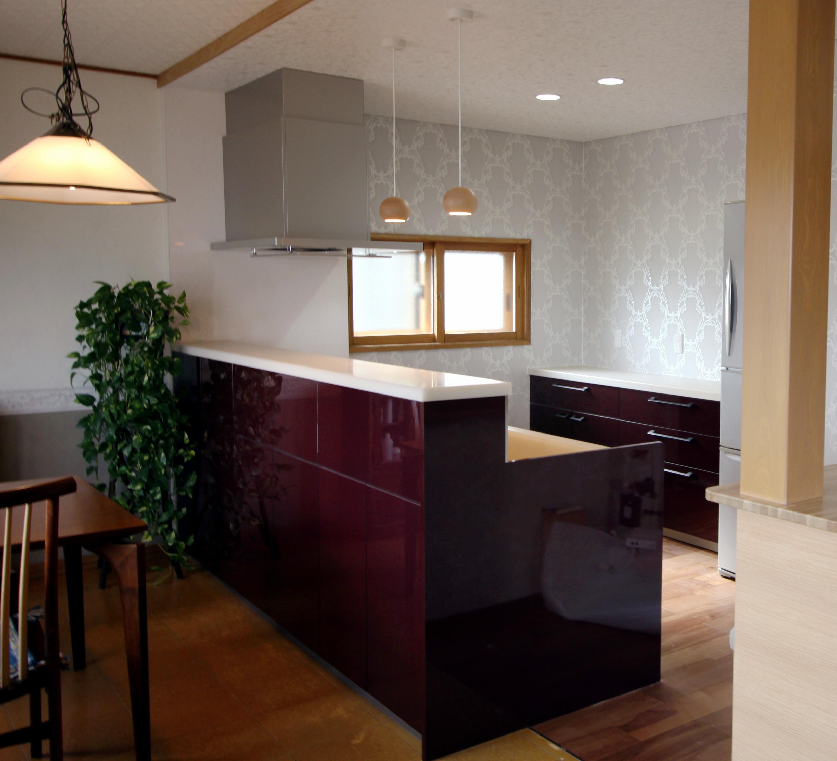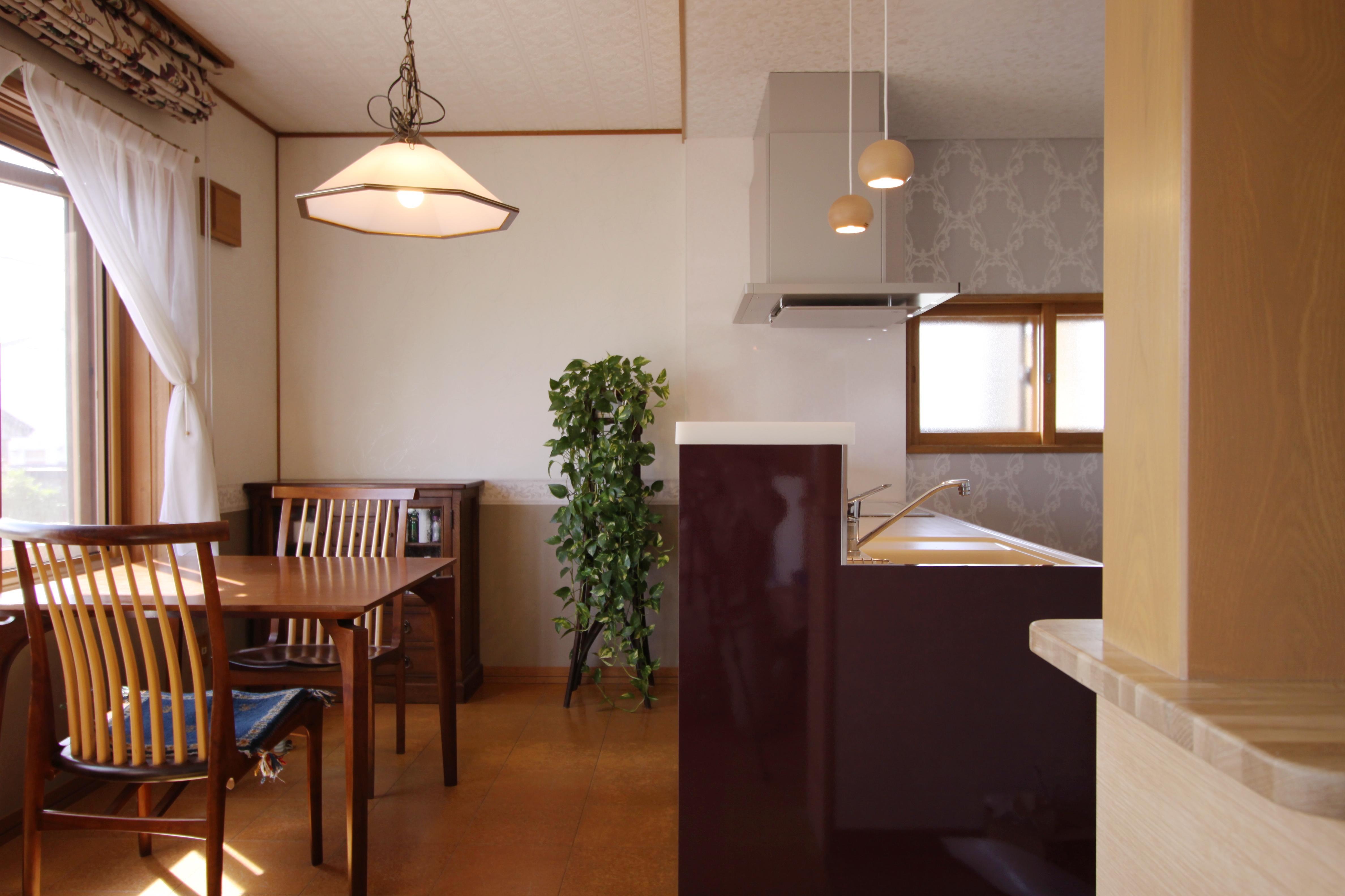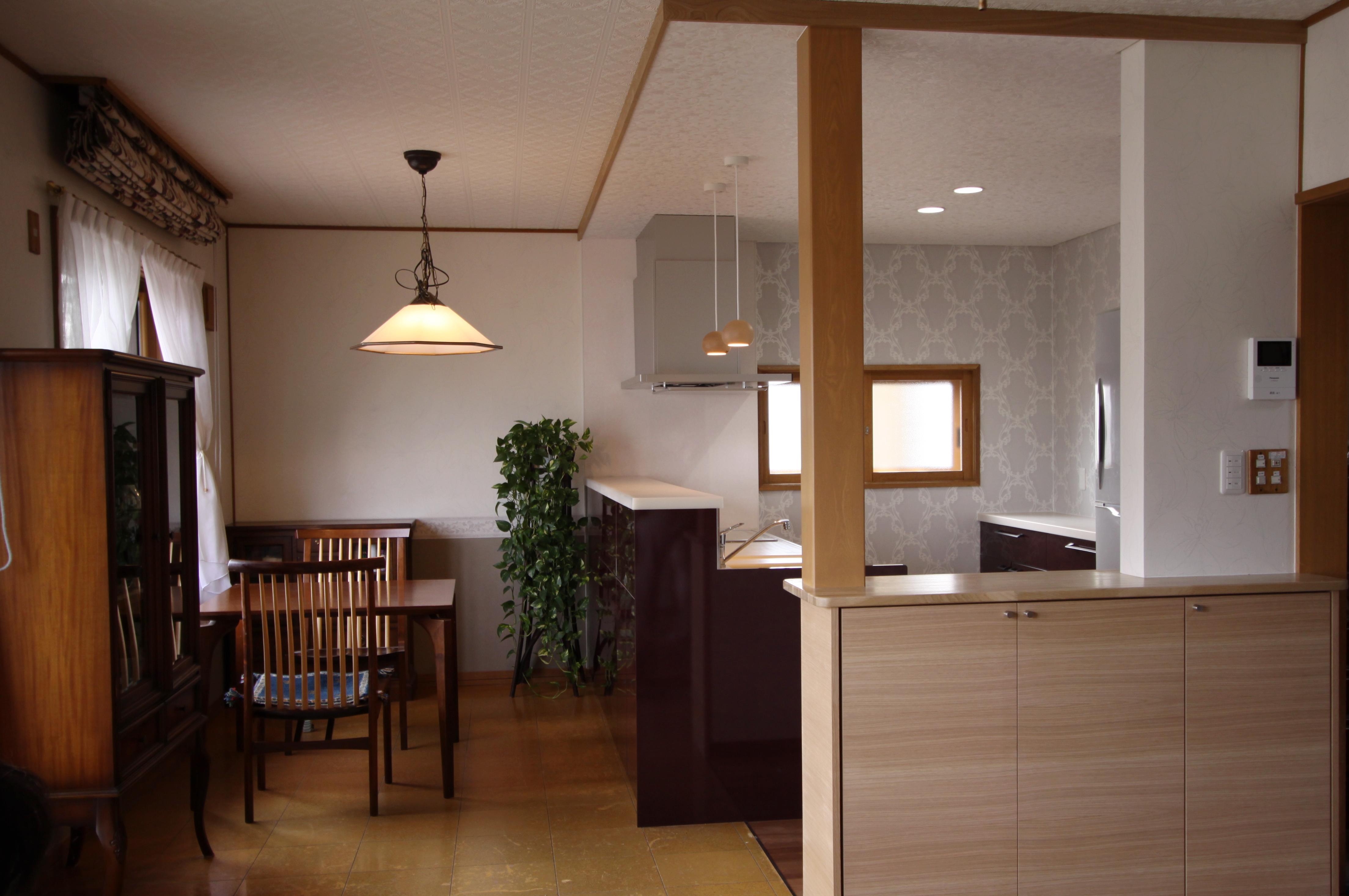 これまで台所と食卓を別々に分けていた間仕切りを取りのぞき、これからは家事をしながら家族とのコミュニケーションをとれるようになりました。