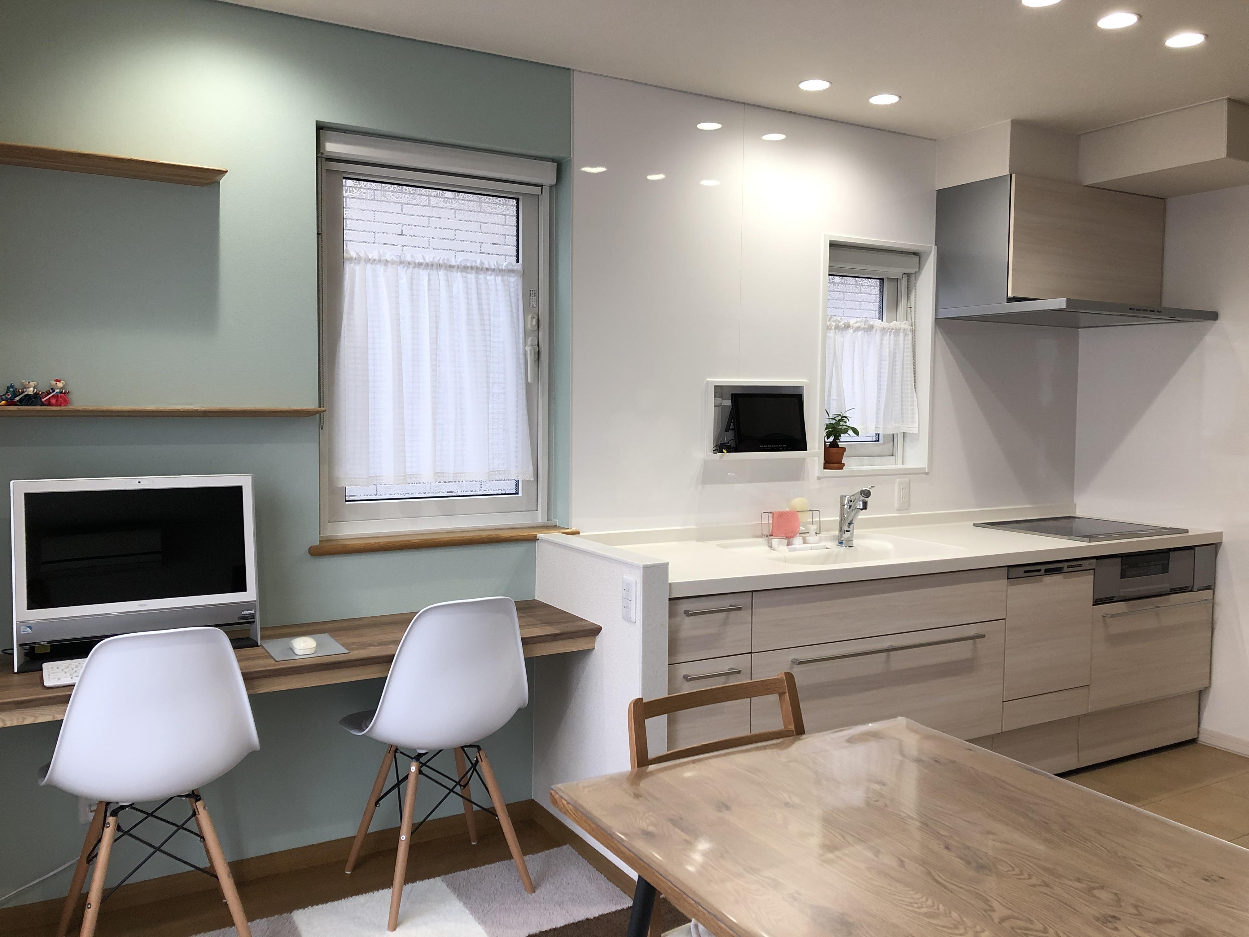 なるよう提案させていただきました。キッチン隣に家族の誰でも使えるPCデスクを作り、小さいながらも