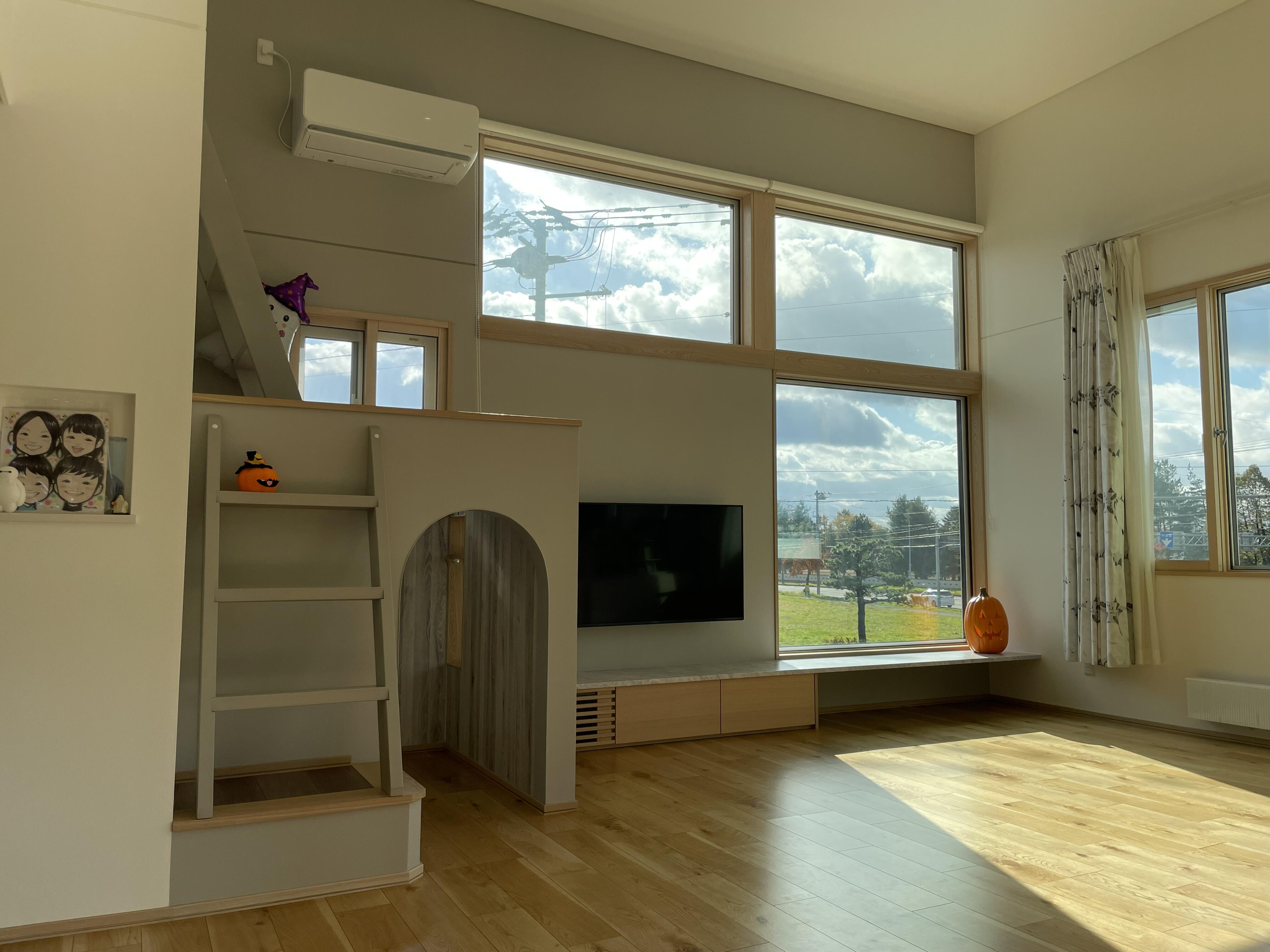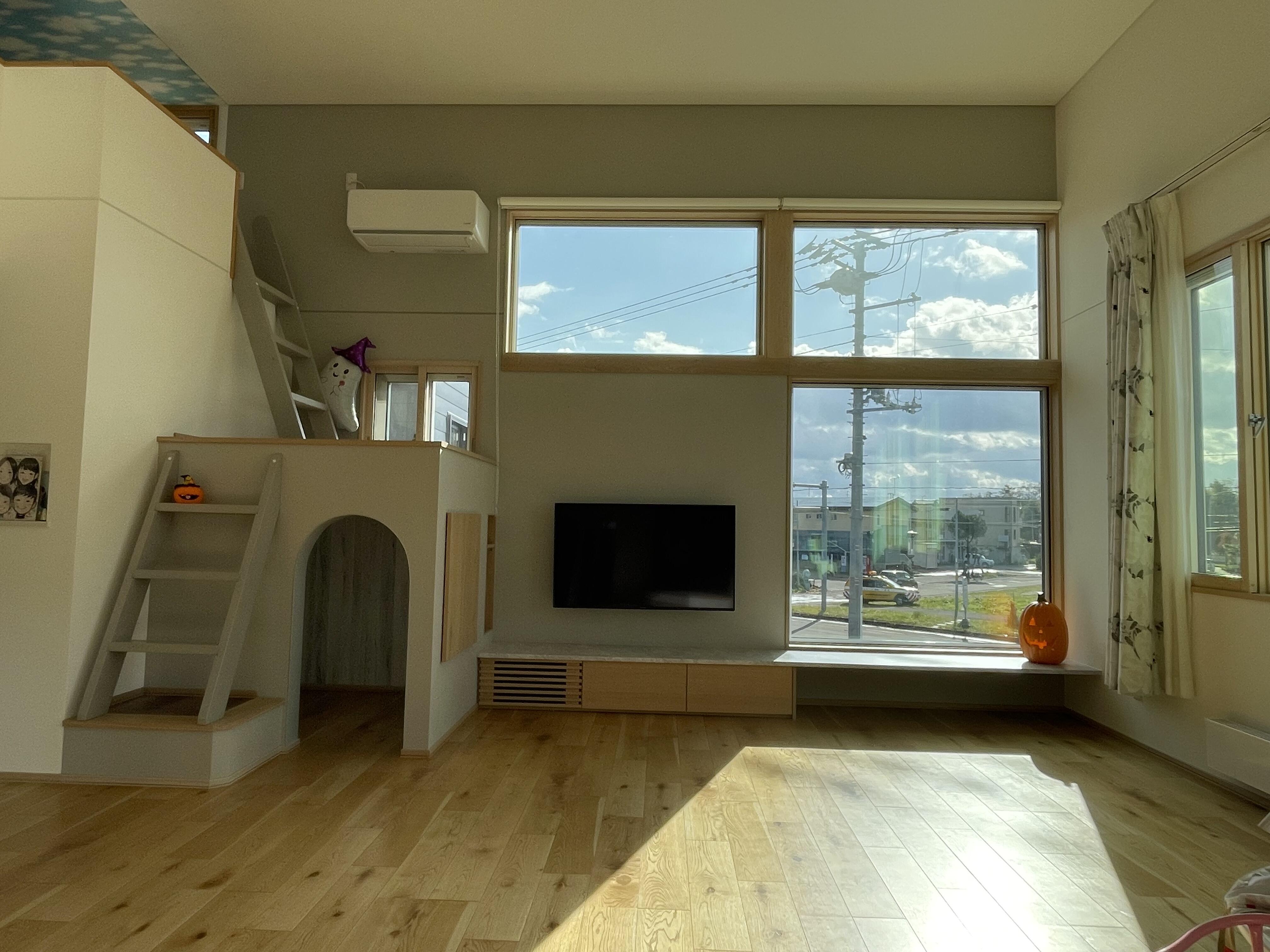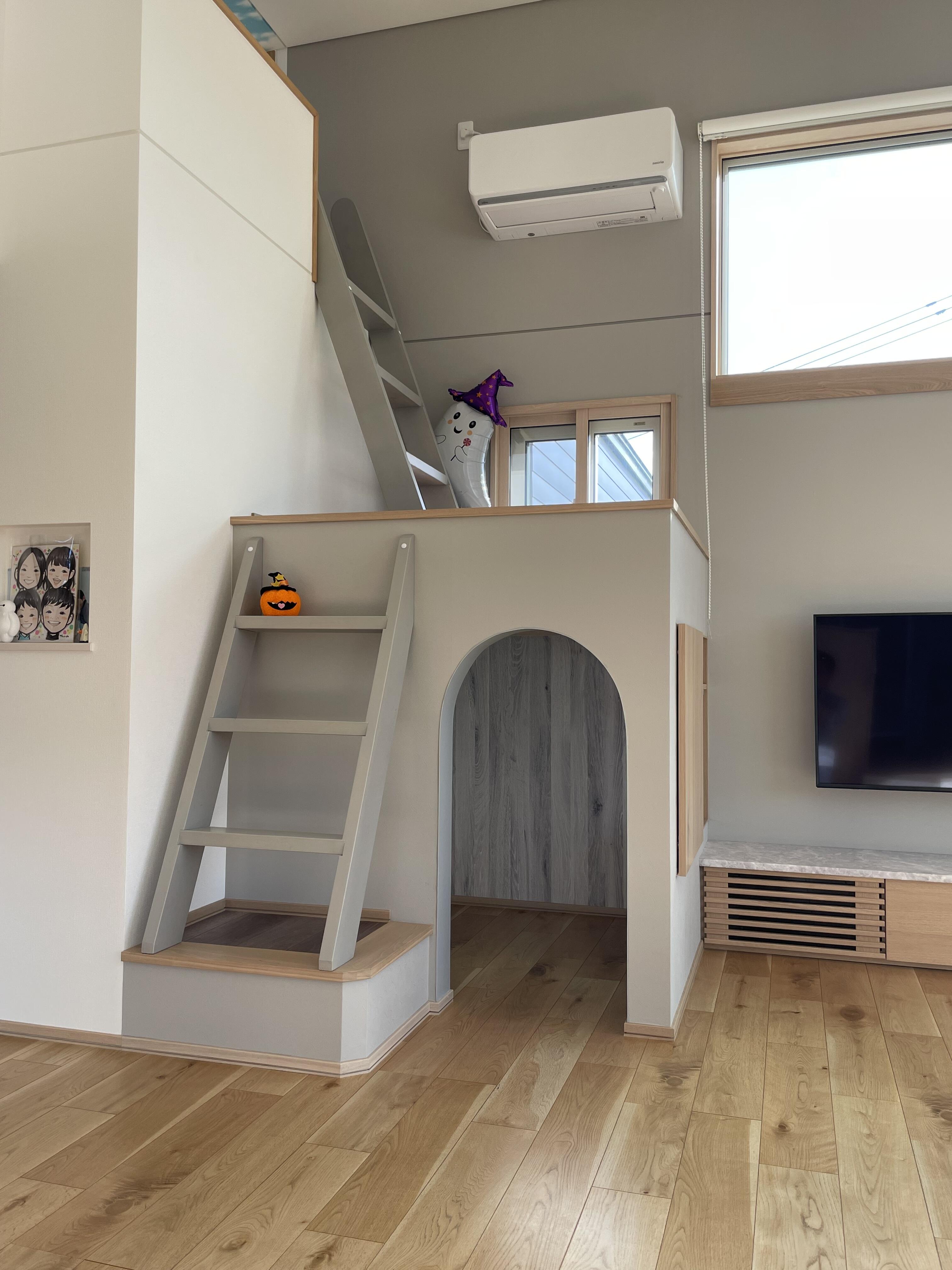 今回提案した窓は本当に見晴らしが良く、明るさもバッチリなので大正解だと思っております。 大きな窓の前で子供たちの勉強や、本を読んだりすることにもピッタリな気持ちのいい場所。 それと同時にロフトに上がるワンクッションとして提案した「秘密基地」。 安全性と遊び心いっぱいな空間に作ることができて、子供達も喜んでくれたので 大満足のリフォームになったと思います。