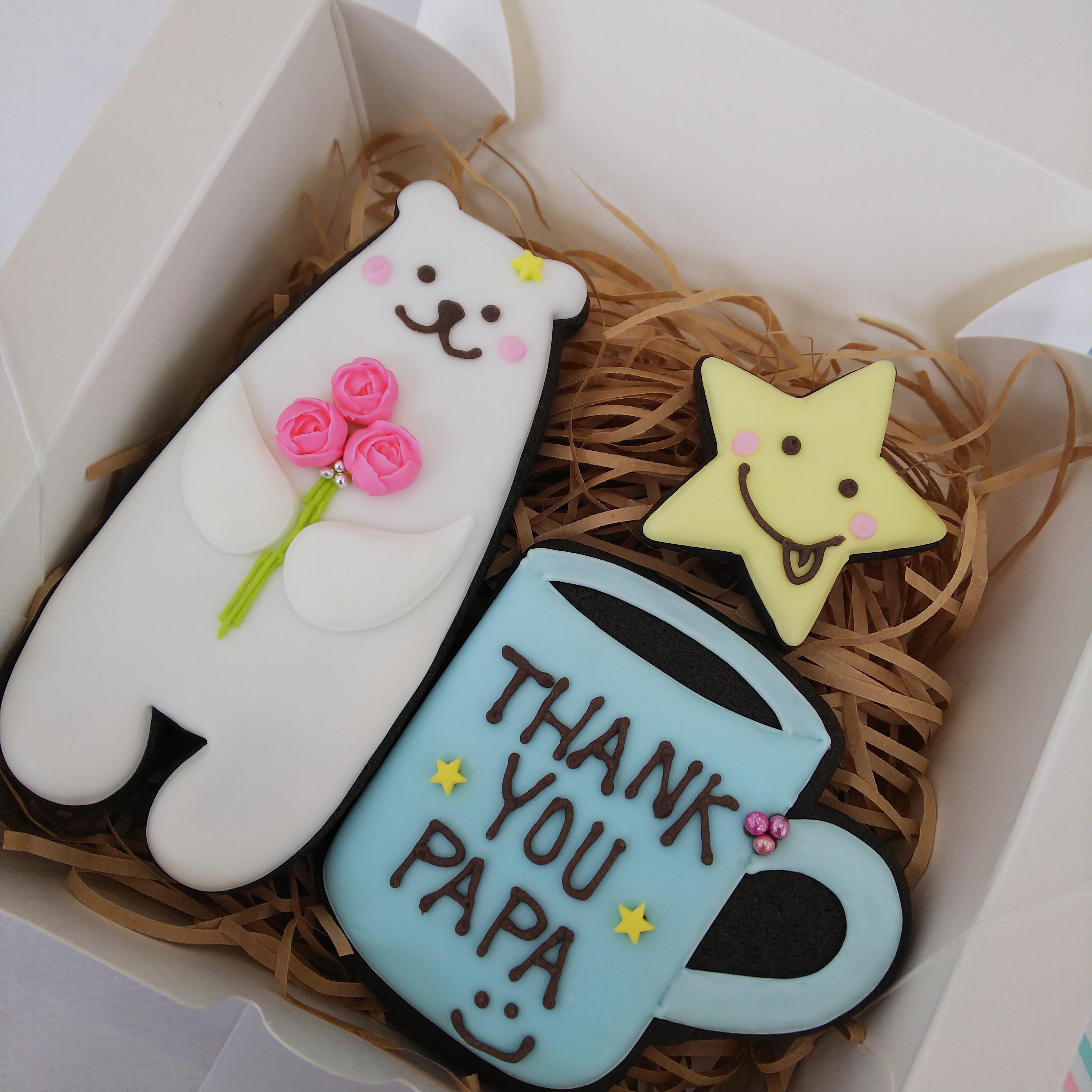 とても楽しみにしていたアイシングクッキーです。文字や顔を書き入れるのですが、初めはバランスを考えながら書くのは難しかったです。