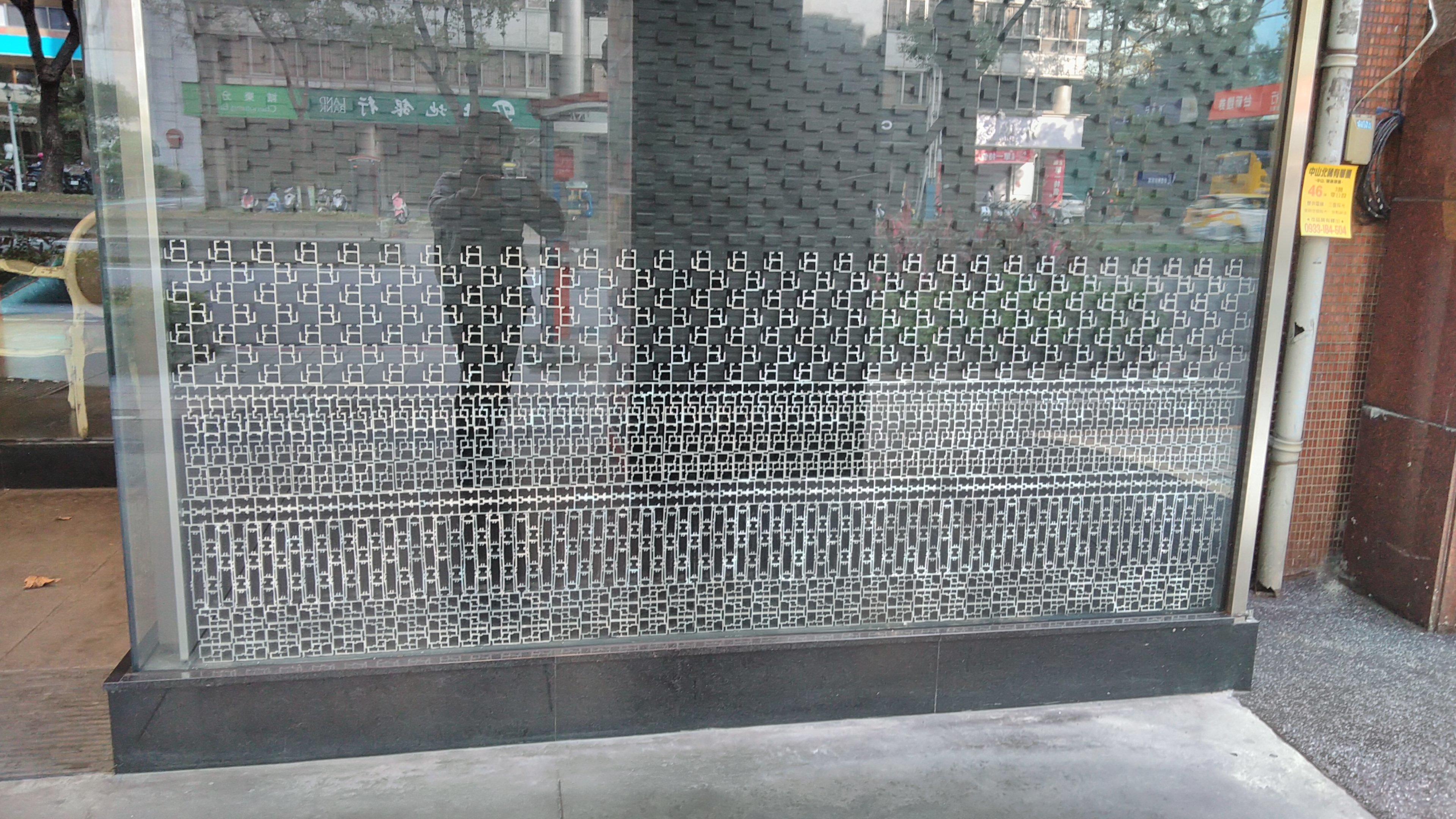 店舗前のパーティション まあラーメンどんぶりの模様の様ですが