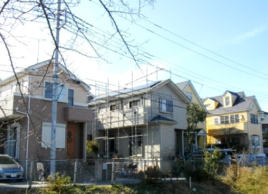 太陽光発電工事です。安全と作業性向上の為に、当社では足場を組みます。補助金の申請も当社で代行させて頂きました。