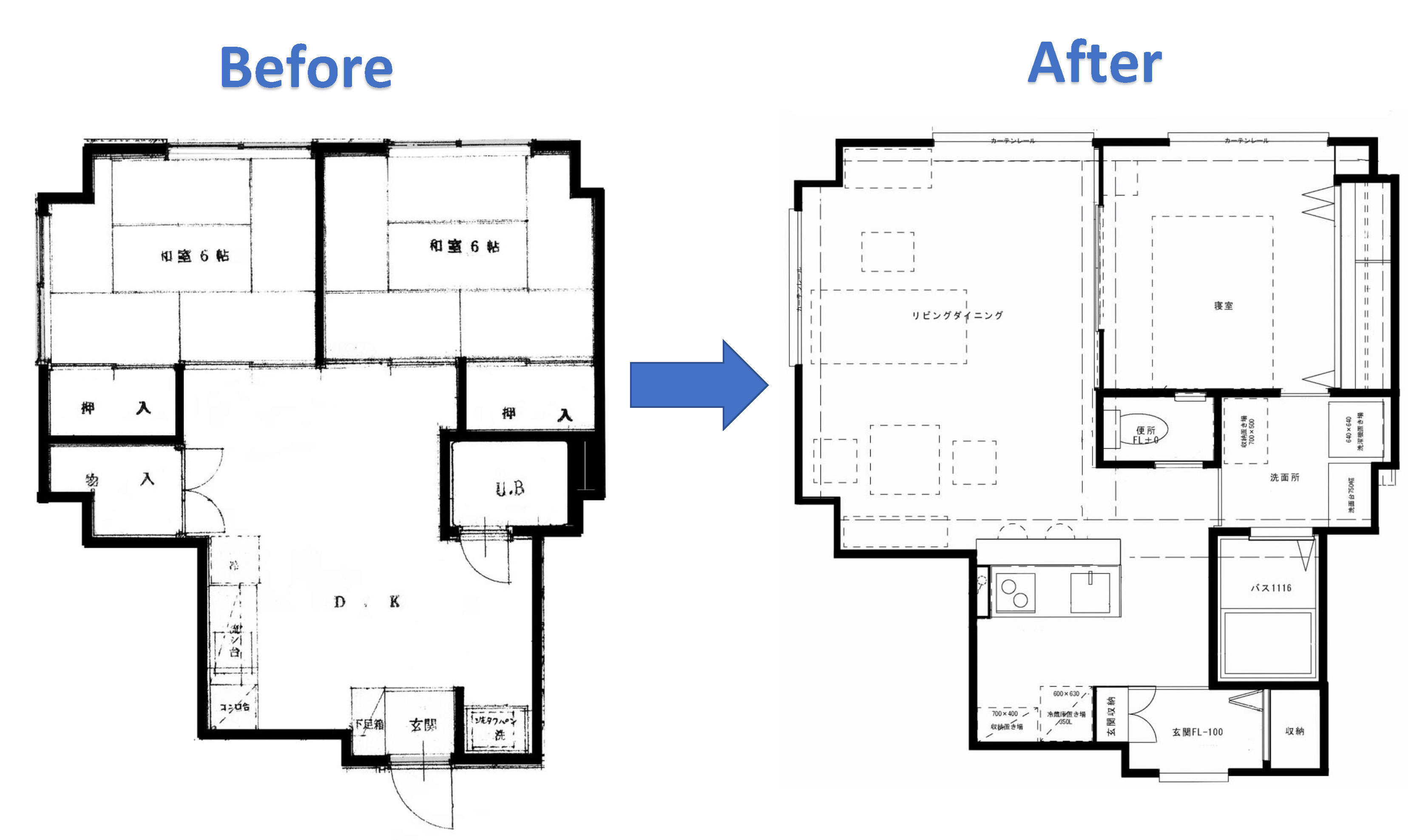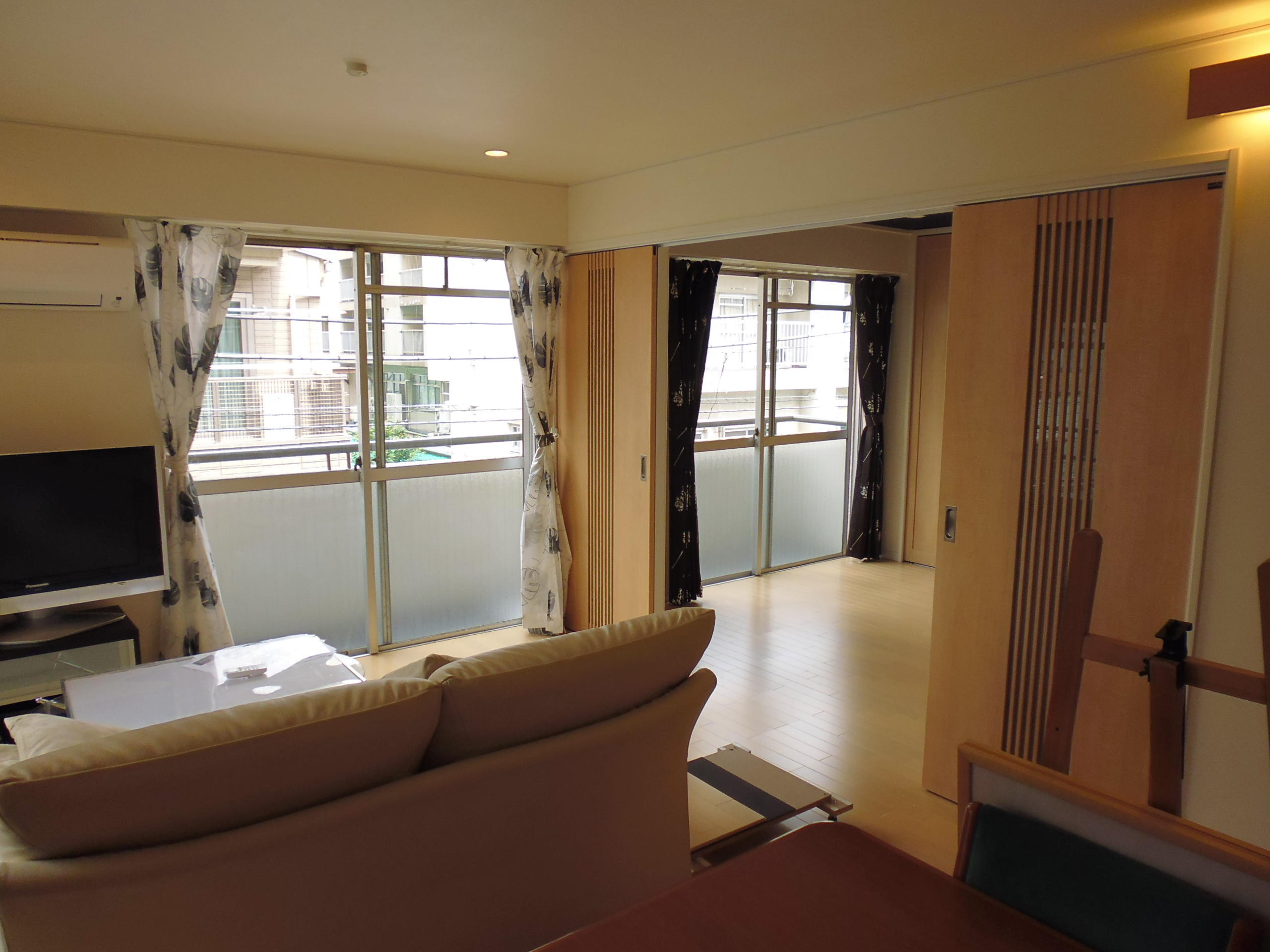 引戸の使い方で様々な住まい方にもフレキシブルに対応できる様に工夫されています。サッシもカバー工法で交換し、断熱性・防音性も高まり快適になりました。