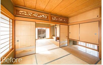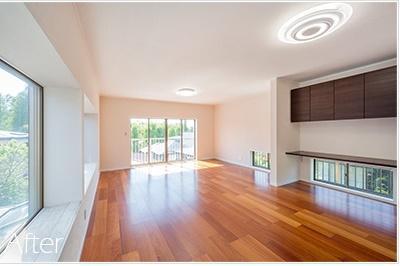 外部はメンテナンスをして間もないので今回は手を付けていません。 もともとがこだわりのある建物だったので、良いところは活かし、経年劣化による部分に手を入れました。 壊すのがもったいないほどの本格和室の続き間を高級感漂う大空間リビングに変更。 全体のカラーコーディネートは揃え、個室はお好みのカラーで仕上げています。 既存の間取りを大幅に変えずに、お客様のご要望を取り入れて暮らしやすい間取りに再設計しました。