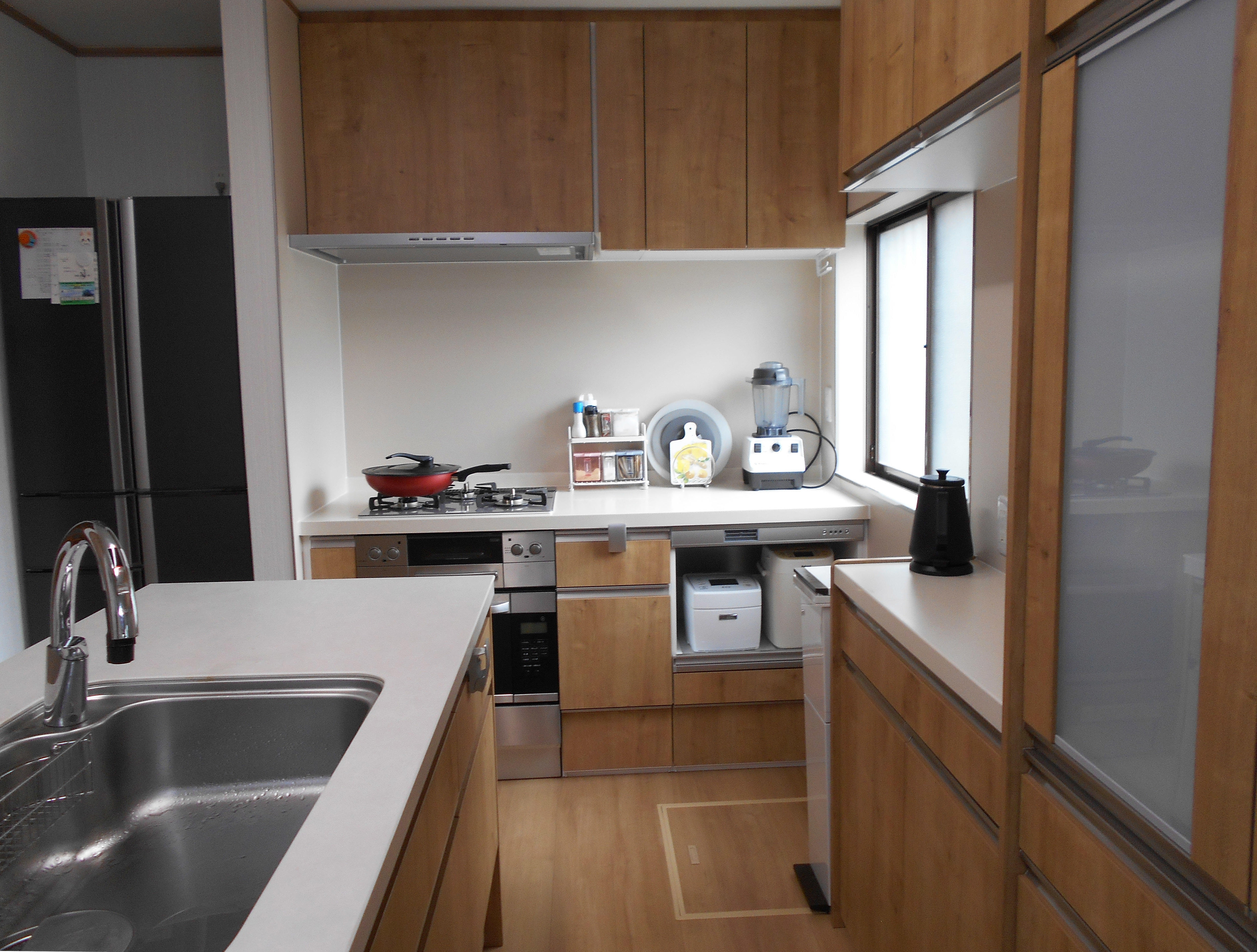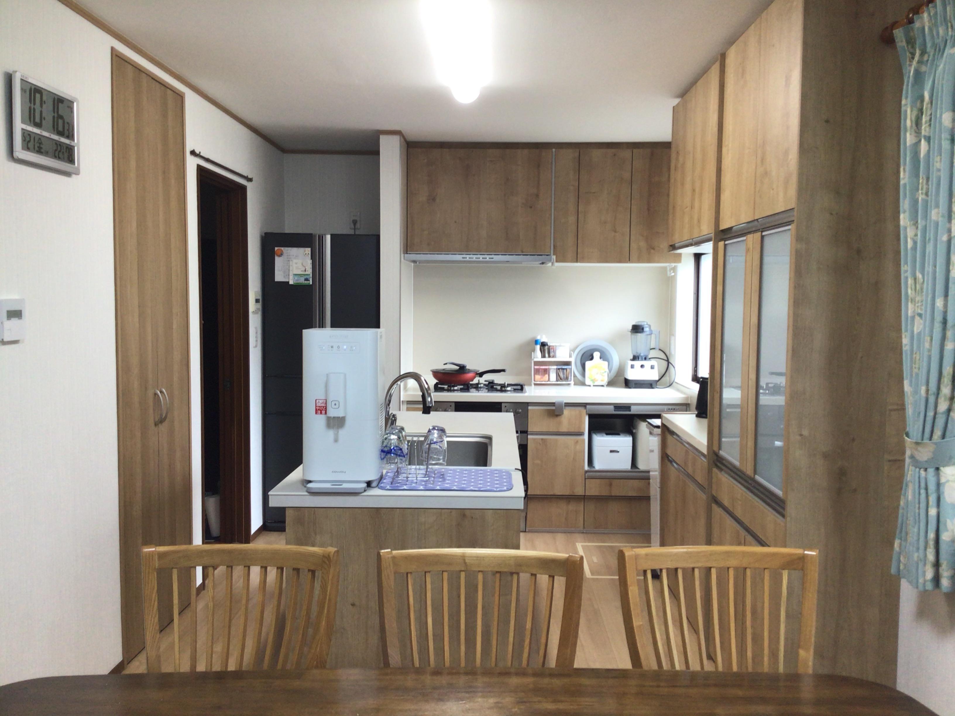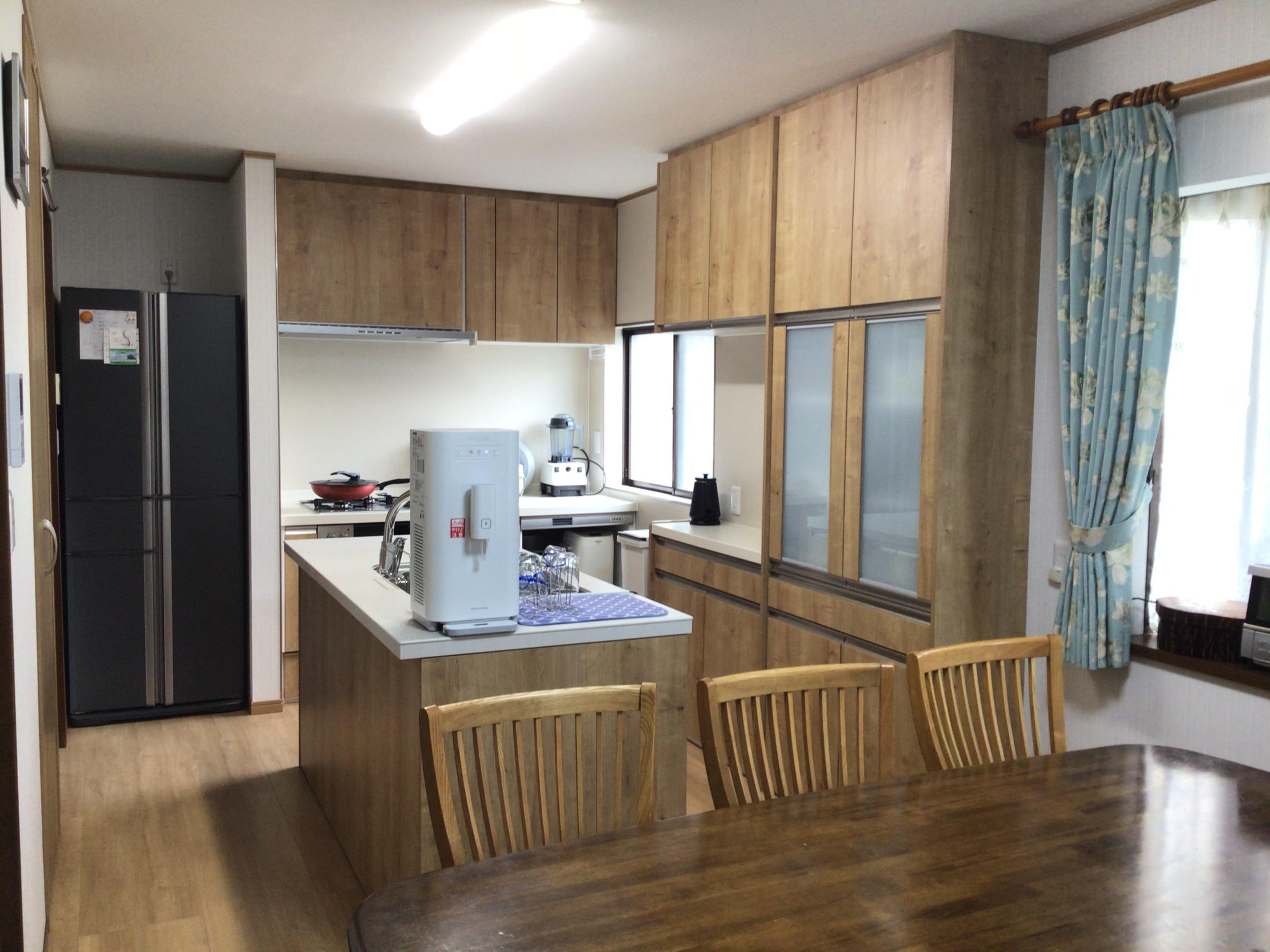 家を建てた時のキッチンは、当時としての最新設備を盛り込んだ立派なものでした。しかしその分ダイニングテーブルを設置する空間も狭く、キッチンエリアを大きくとっている割には作業しずらいと思っていました。ご提案頂いたキッチンの配置は、お料理教室を思わせる作業しやすそうな形でとても気に入りました。また、設備に関する部分では、ショールームに案内してもらい、一つ一つ確認しながら選んでいけたので、満足しています。出来上がった空間はとても明るく使いやすいもので、施工をお願いして本当に良かったと思っています。