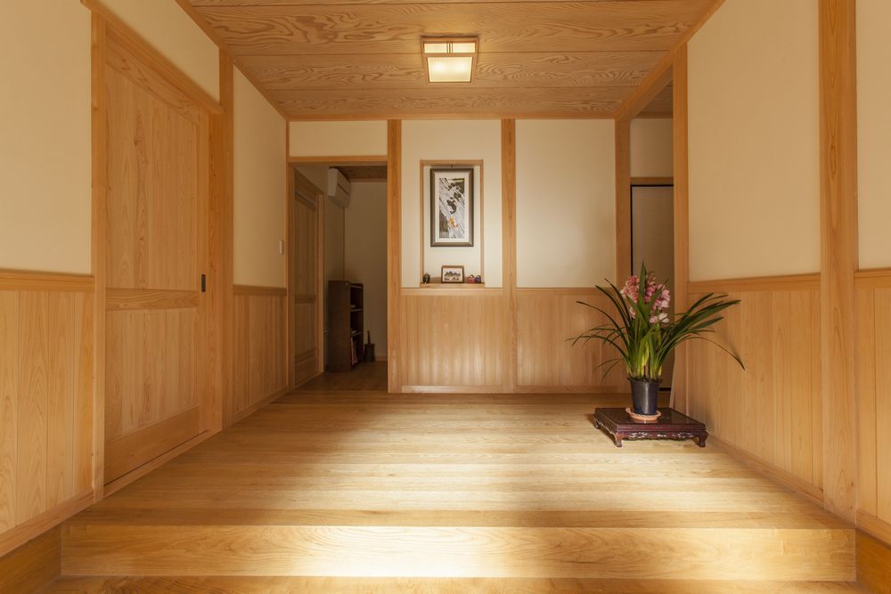 80歳を超えたご夫妻の暮らしやすさを一番に追求した木の家リフォームです。栗農家のご夫婦のために、栗のフローリングを採用したほのぼのとした家づくりです。
