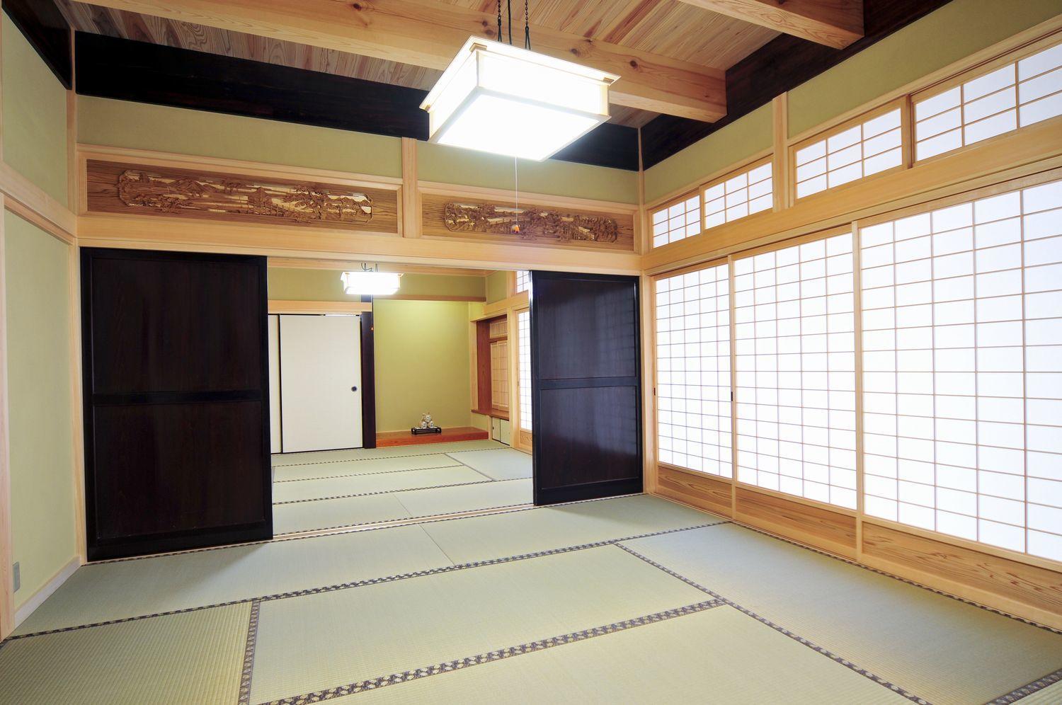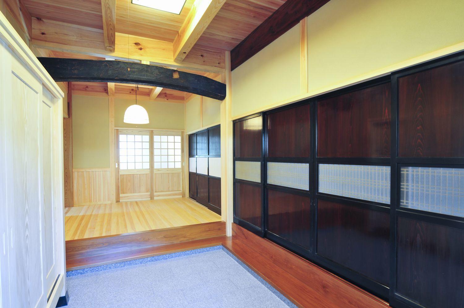 旧家から移築した梁や桁、戸などを、新しく建てた新居に再利用した事例です。