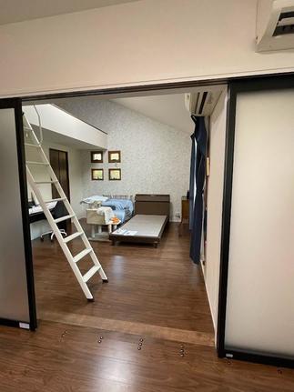 工事内容:2階にキッチン新設、間仕切り扉新設、天井壁のクロス貼替 その他キッチン設置のための配管工事や電気・コンセントの増設・移設