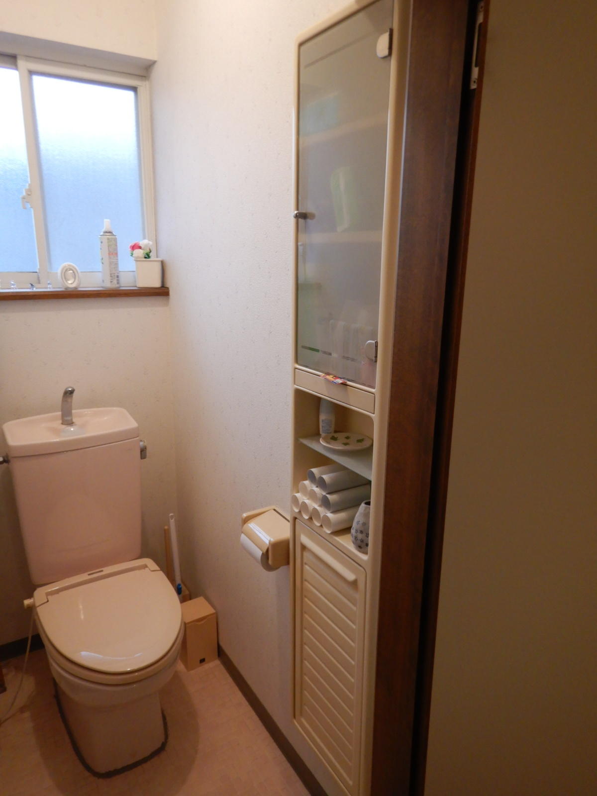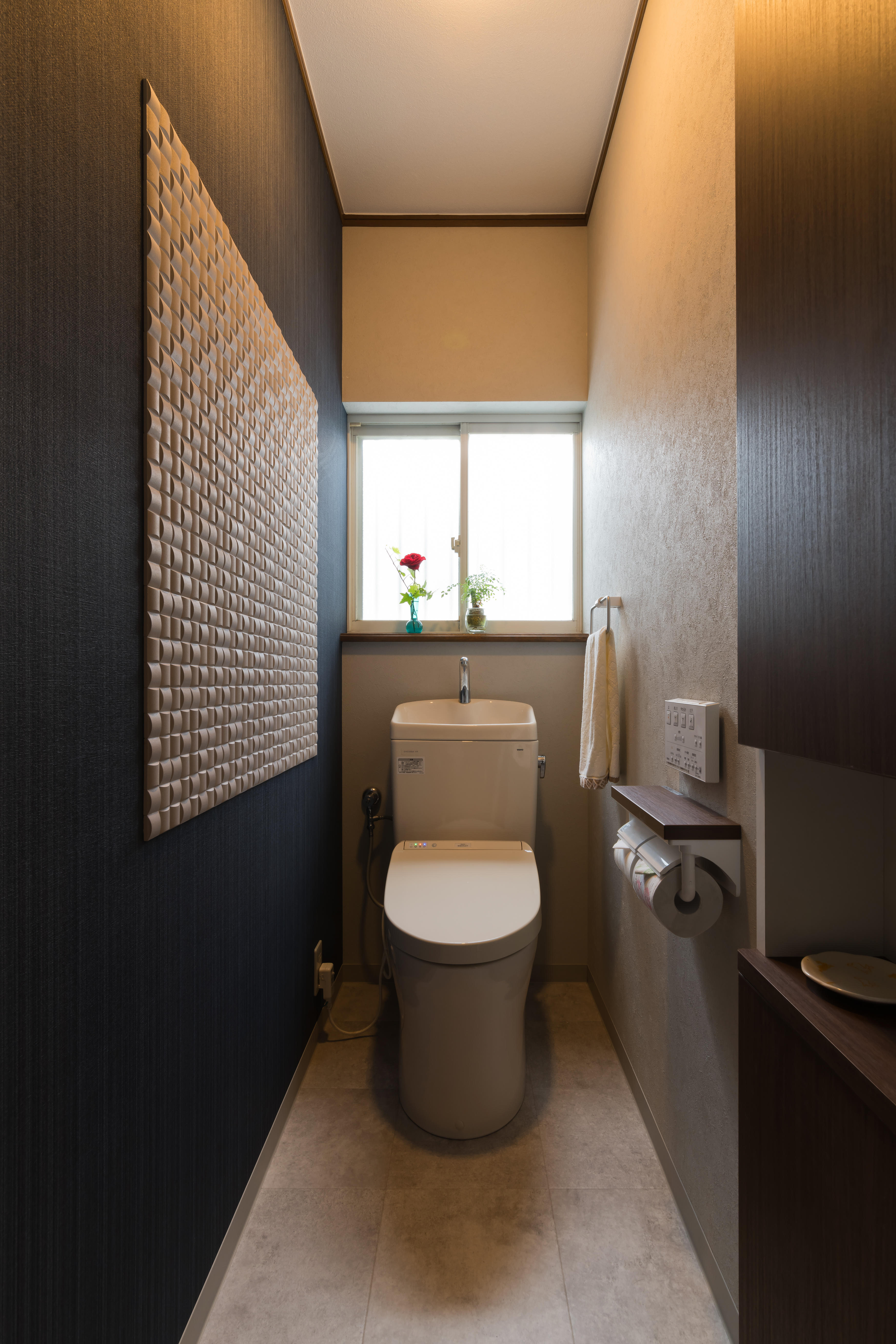トイレはそのままで、クロスやクッションフロアを張り替えるだけで違った雰囲気に☆ 絵画のようにエコカラットを張ることでアクセントと機能性を両立しました!
