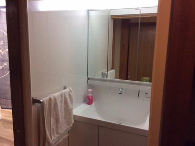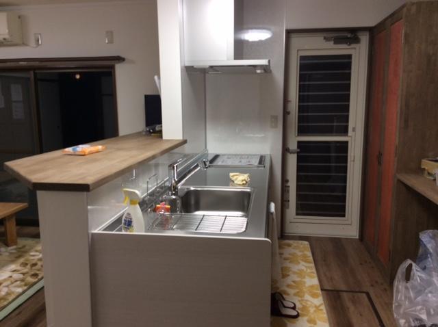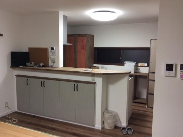 対面キッチンを中心に水廻りリフォームをしました。特にレンジフードは自動洗浄タイプです。