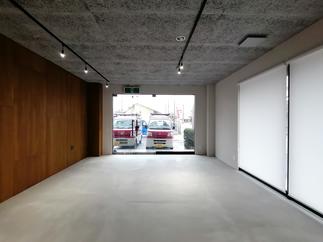 ご相談しながら、色調をグレーに、壁は敢えて「倉庫空間」を体感できる資材をご提案、施工させていただきました。