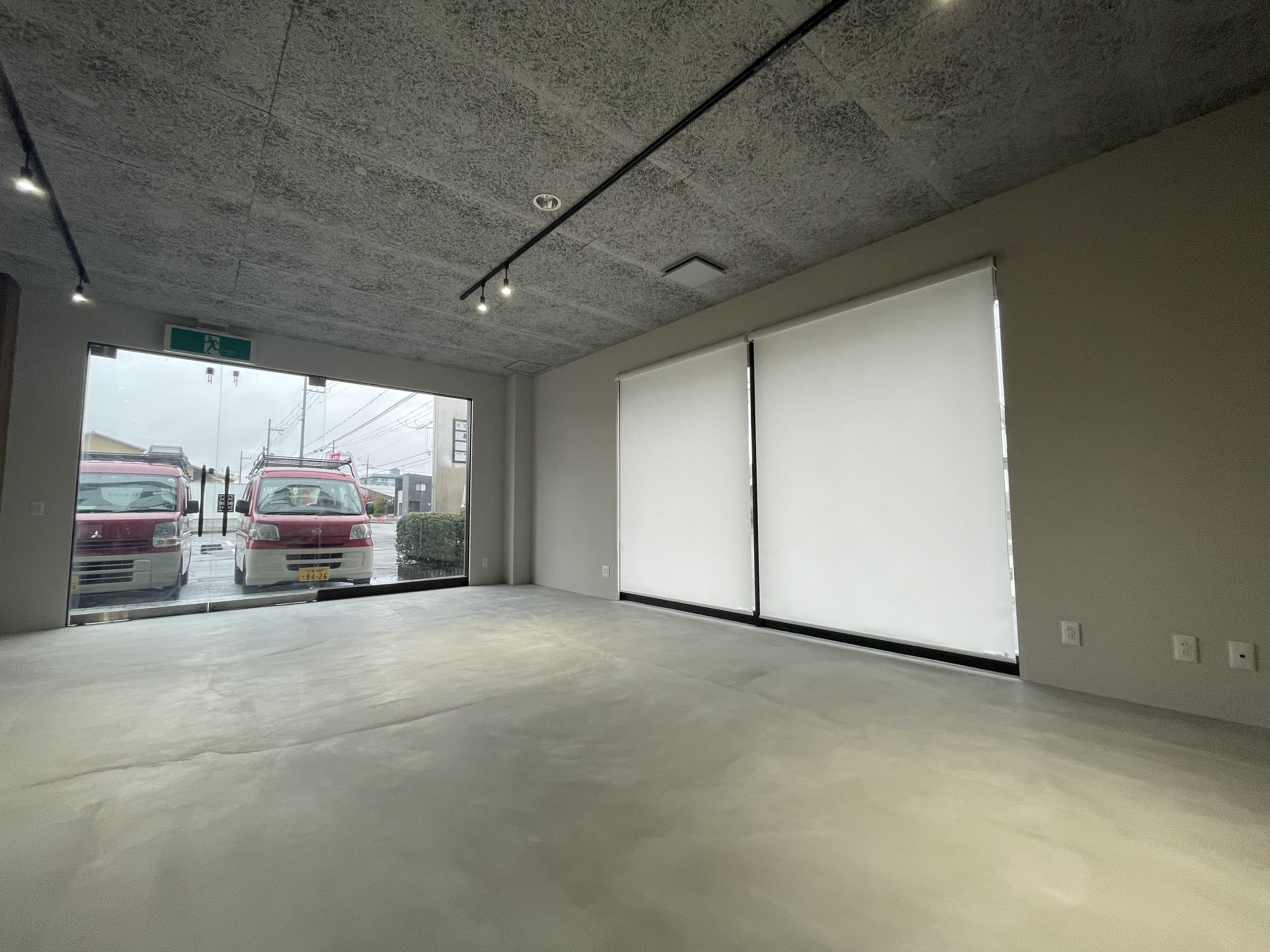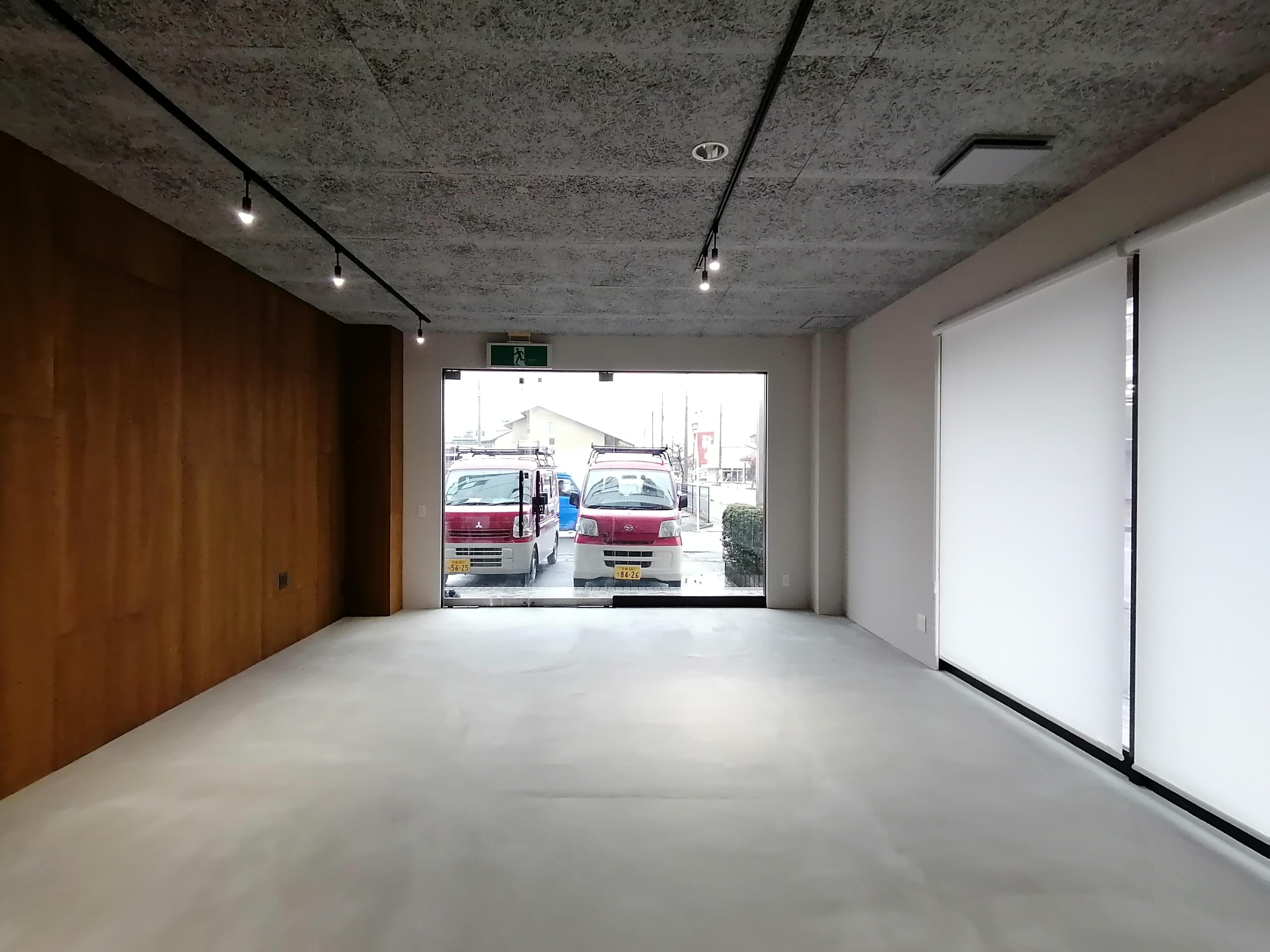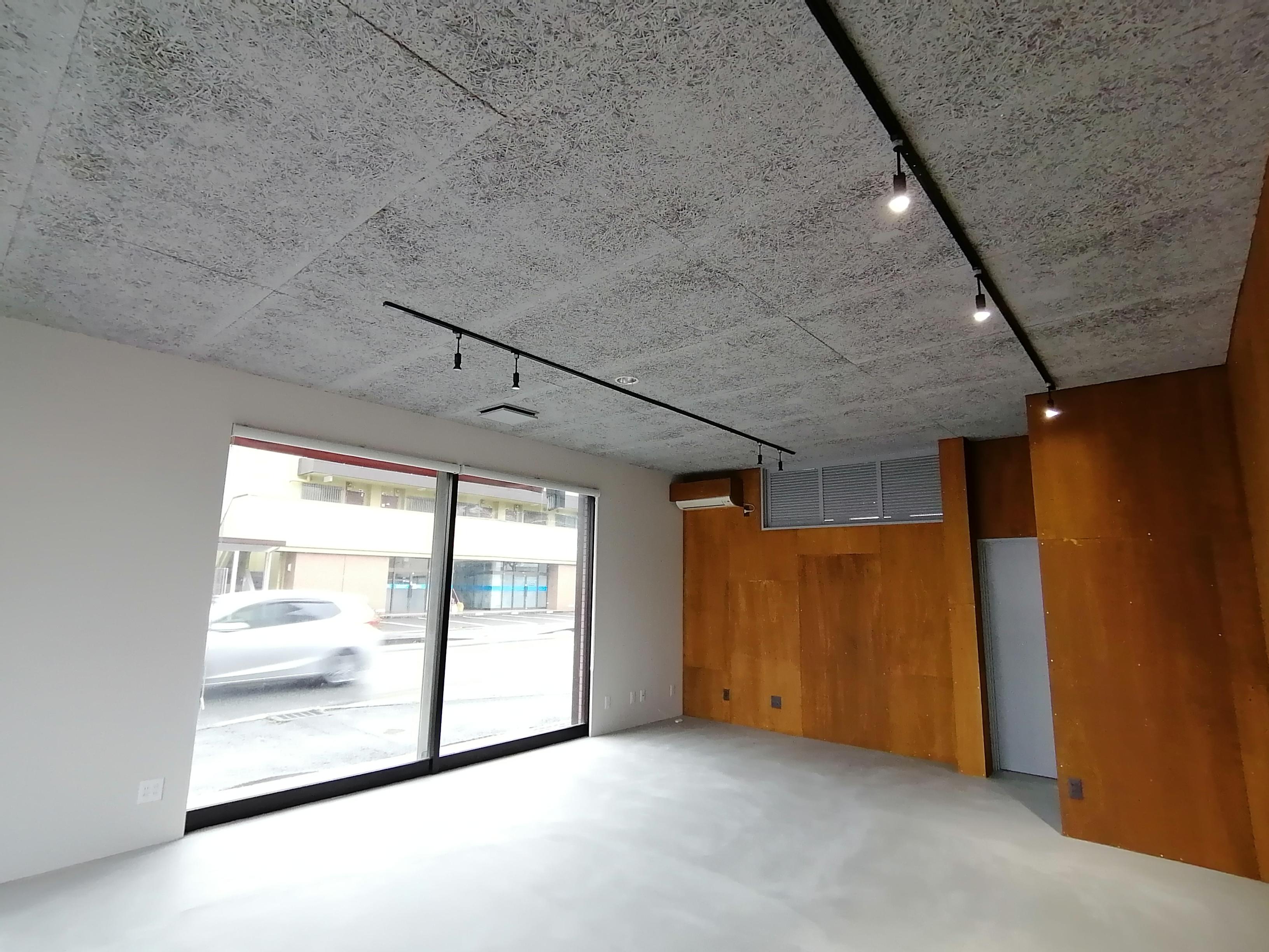 天井には木毛セメント板を設置、床にはコンクリートを使用し、ご希望のグレー色調へと変容させました。