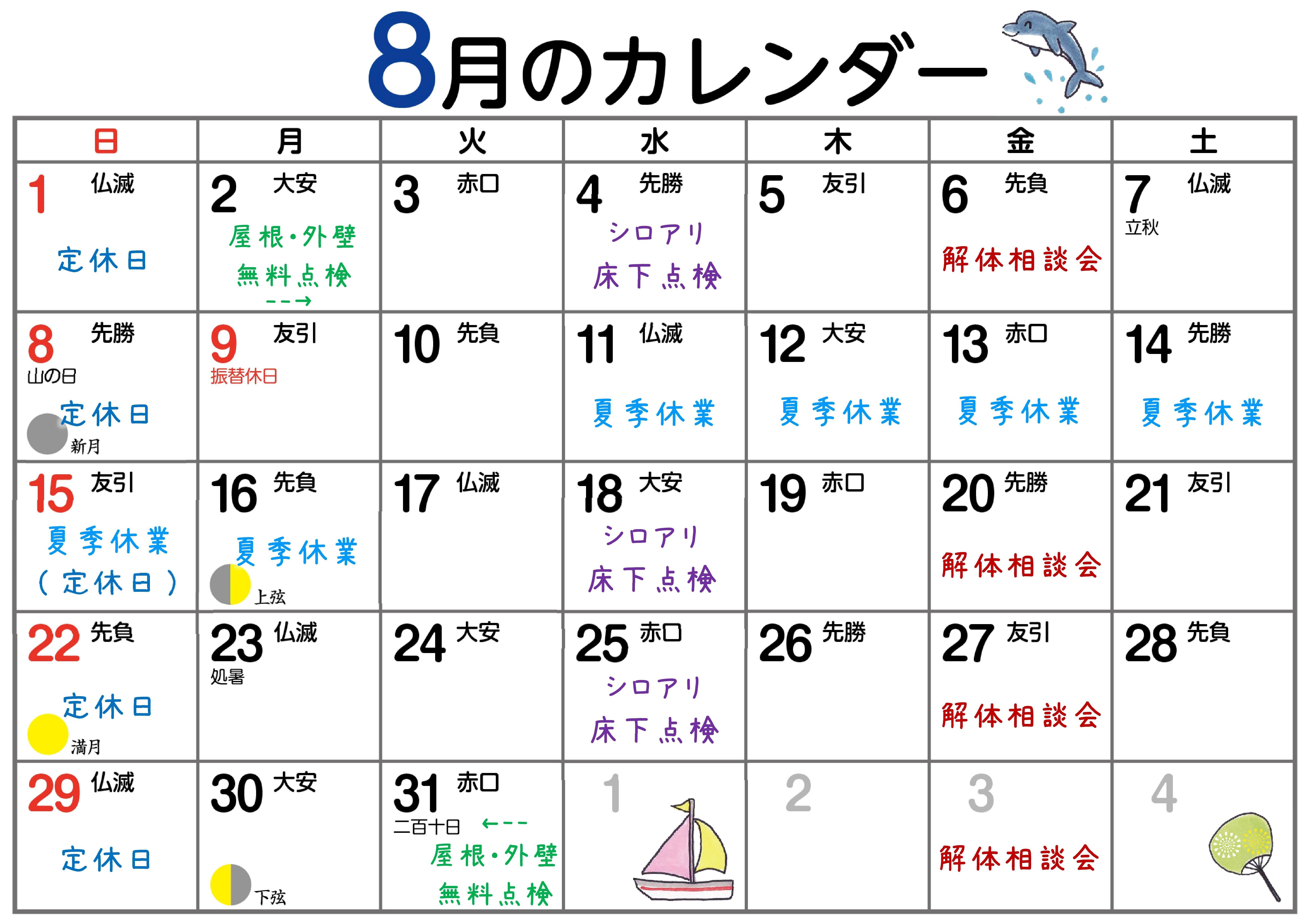 8月に開催予定のイベントと定休日を