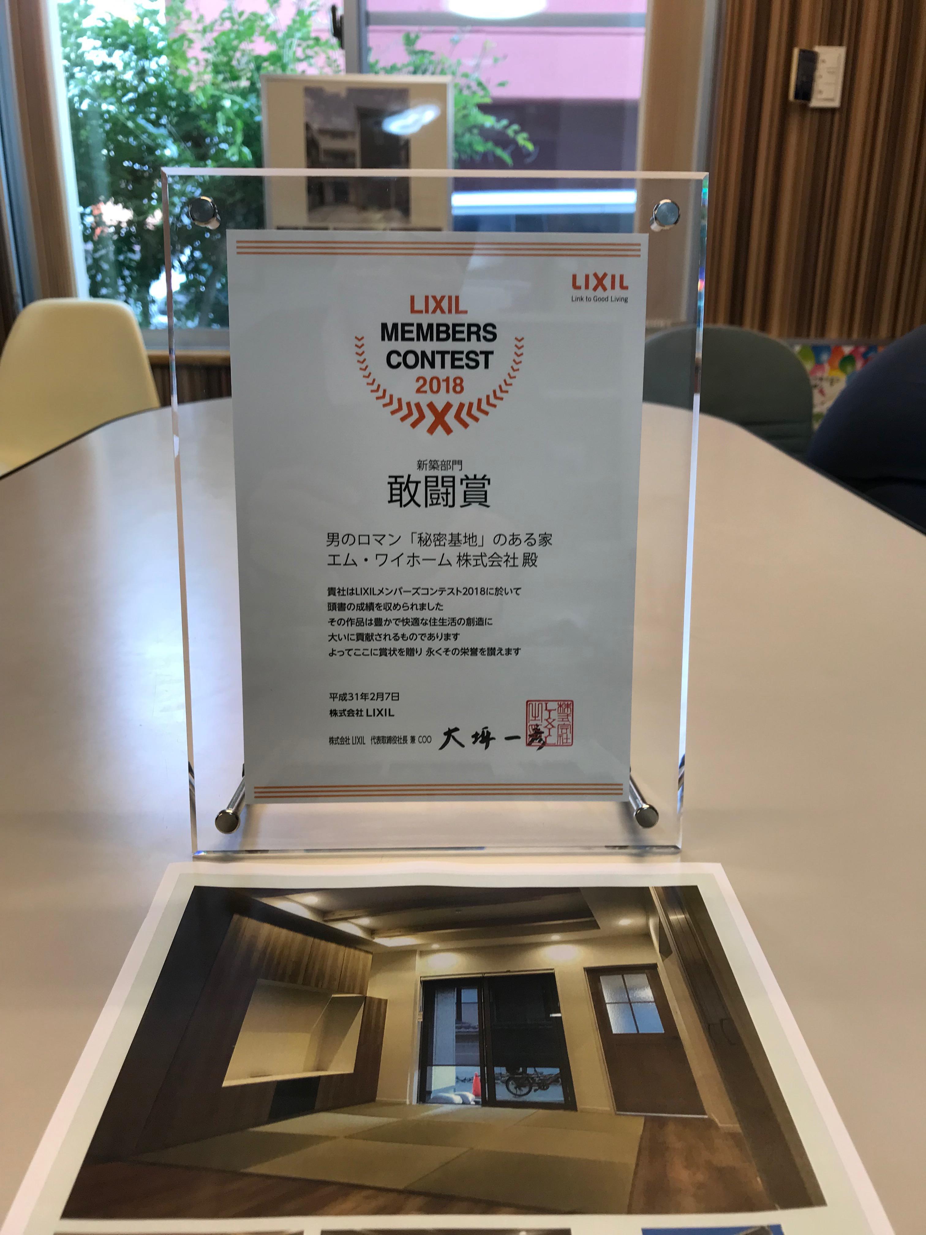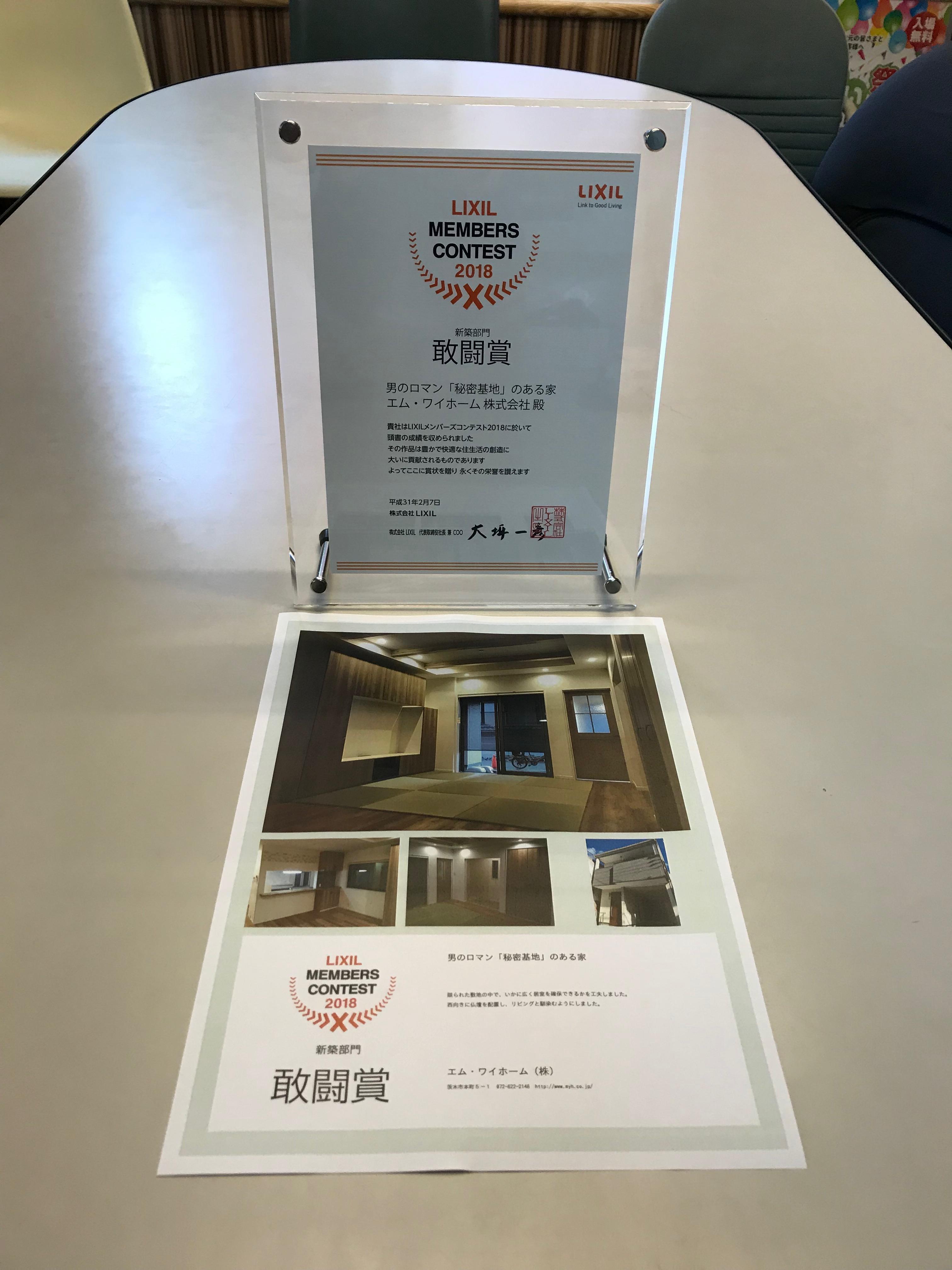 エムワイホームは、LIXILメンバーズコンテスト2018に於きまして、新築部門で敢闘賞をいただきました!