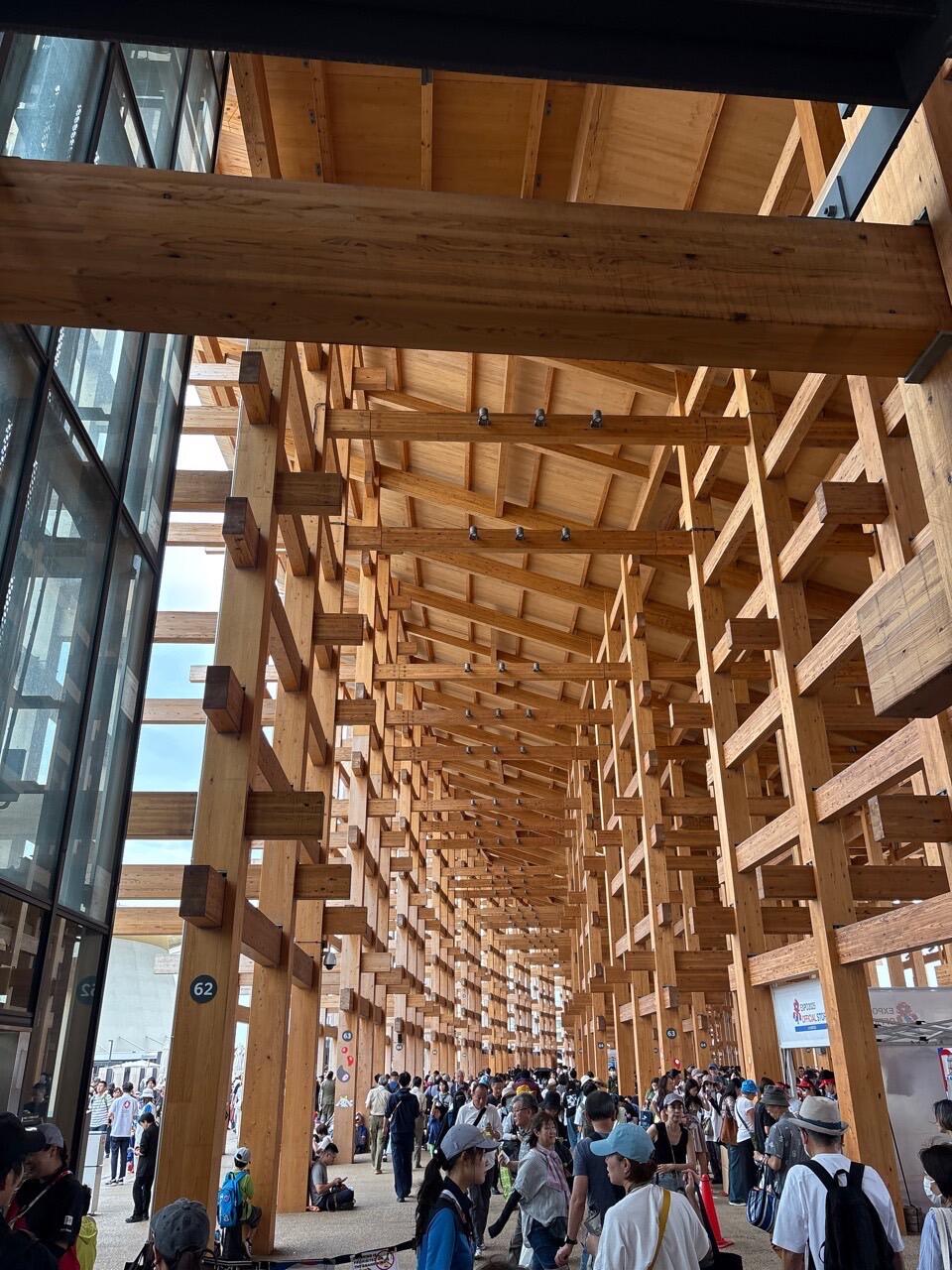 会場を象徴する「大屋根リング」は、まさに百聞は一見にしかず。テレビや写真で見るのとは全く違い、そのスケールと迫力に圧倒されました。