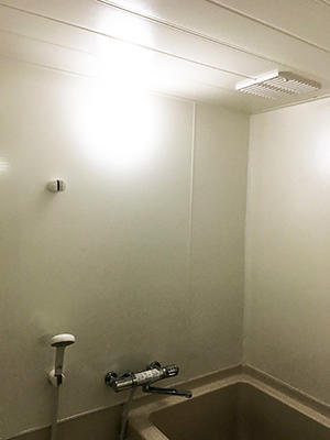 マンションのバスルームのベンキ仕上げの天井と壁を、バスパネルに貼り直しました。窓が無く、換気扇も小さいマンションの浴室は換気がしづらく、経年による湿気によるイタミや汚れが気になるとのことで、壁と天井を貼り直しました。