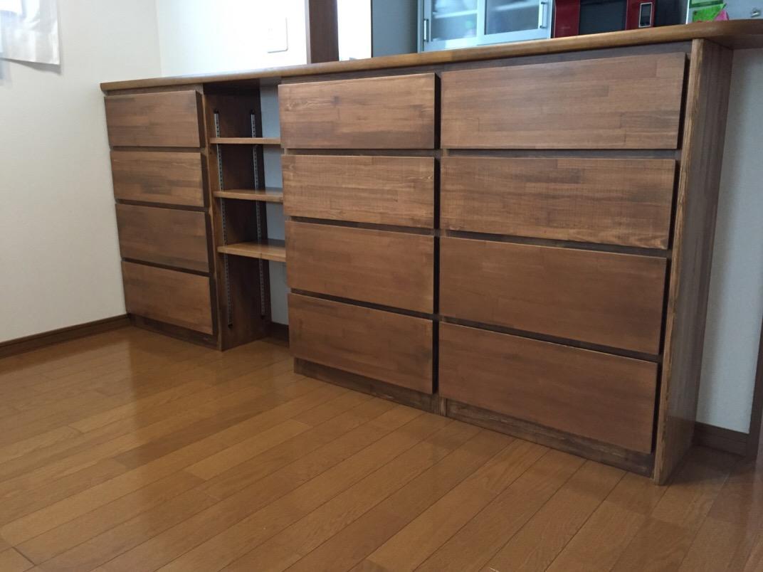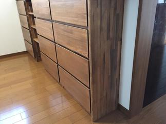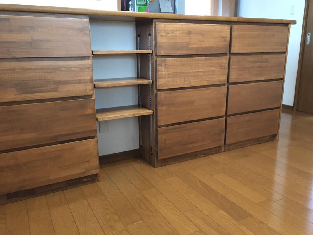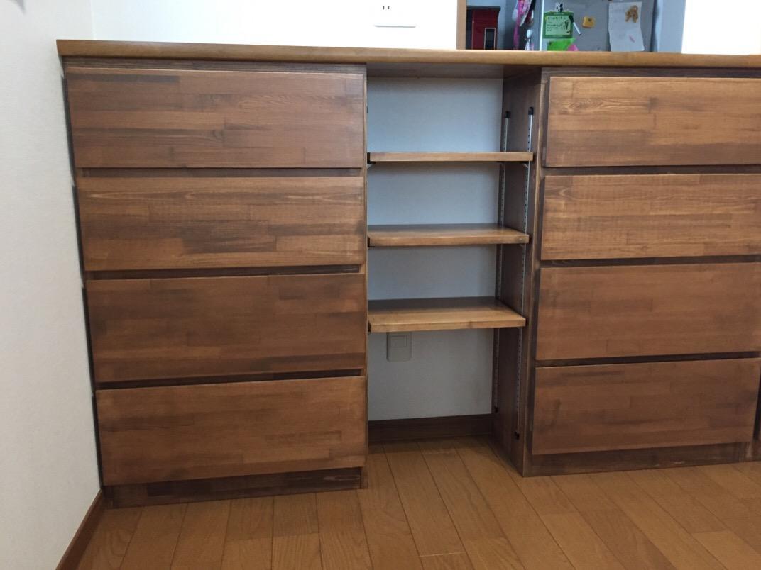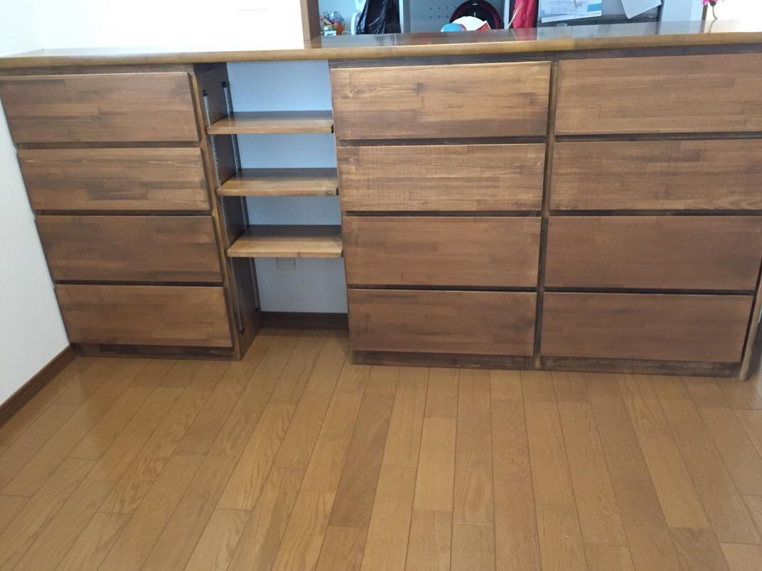 作り付けの家具を製作・設置しました。 既存のカウンターの色に合わせ、部屋になじむ様に仕上げました。